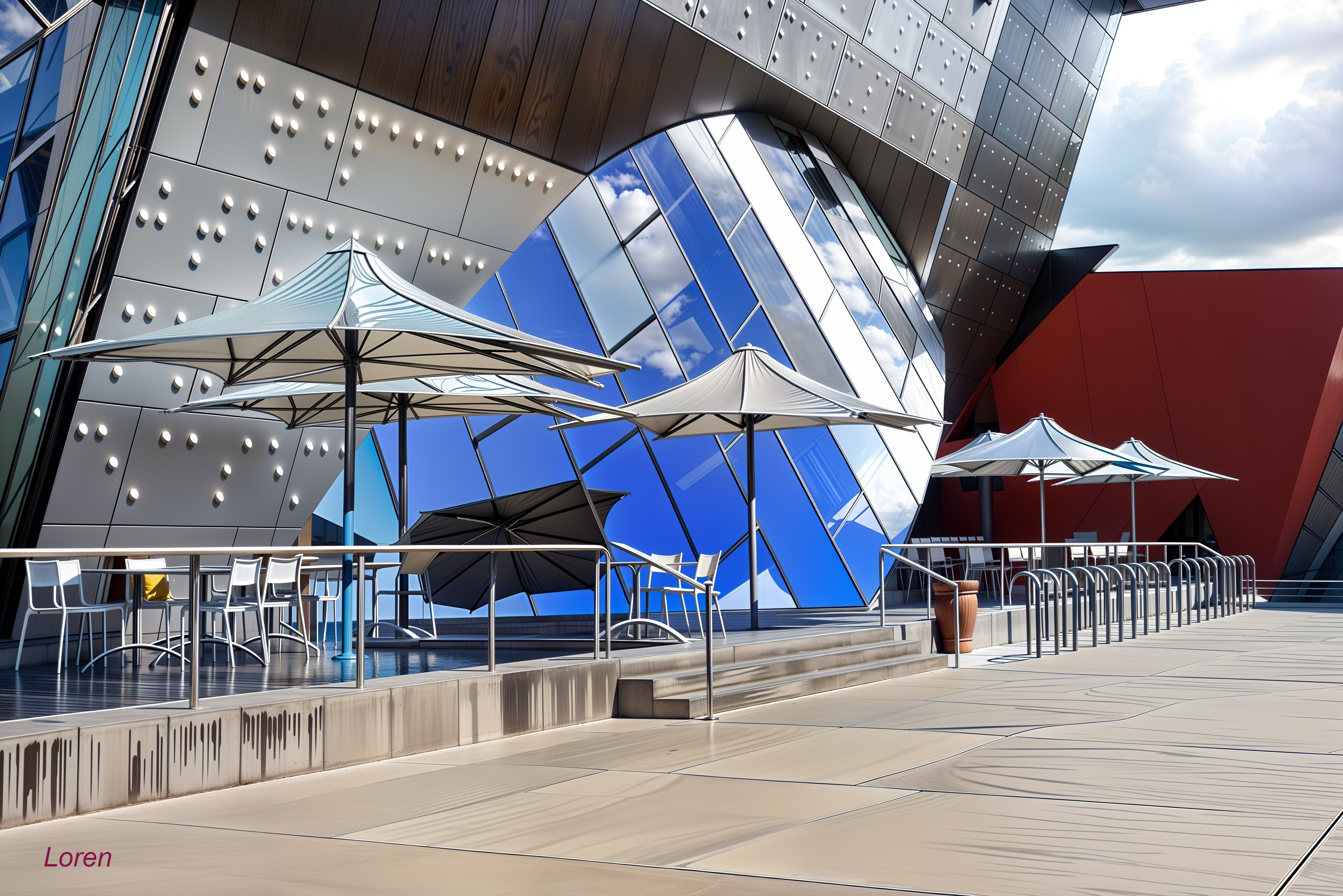Modern Architectural Marvel with Outdoor Seating