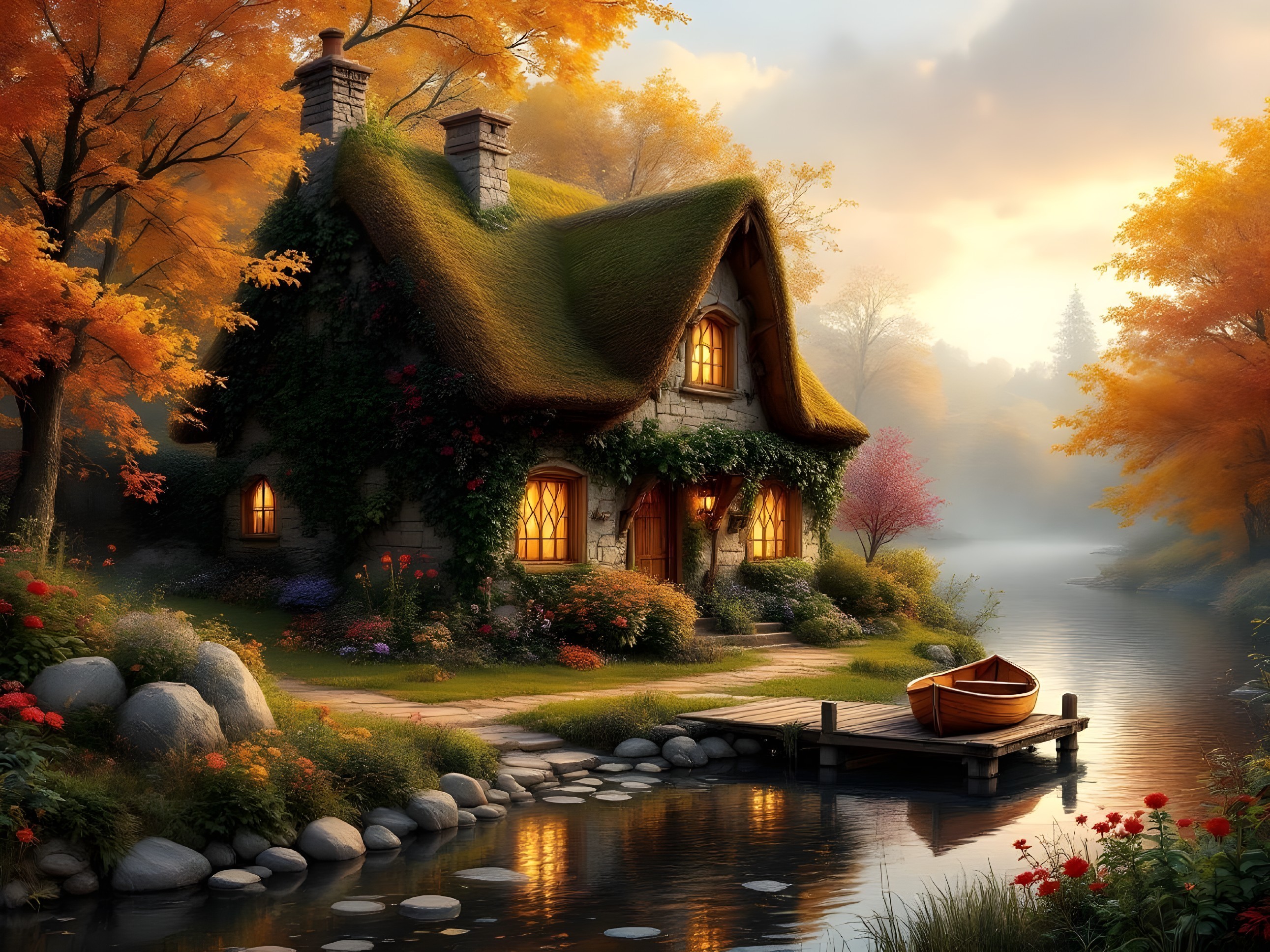 Enchanted Autumn Gazebo in Dreamy Landscape