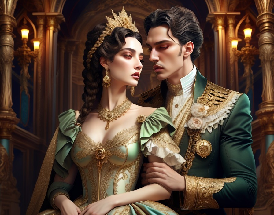 Enigmatic Elegance: Digital Portrait in Biedermeier Style