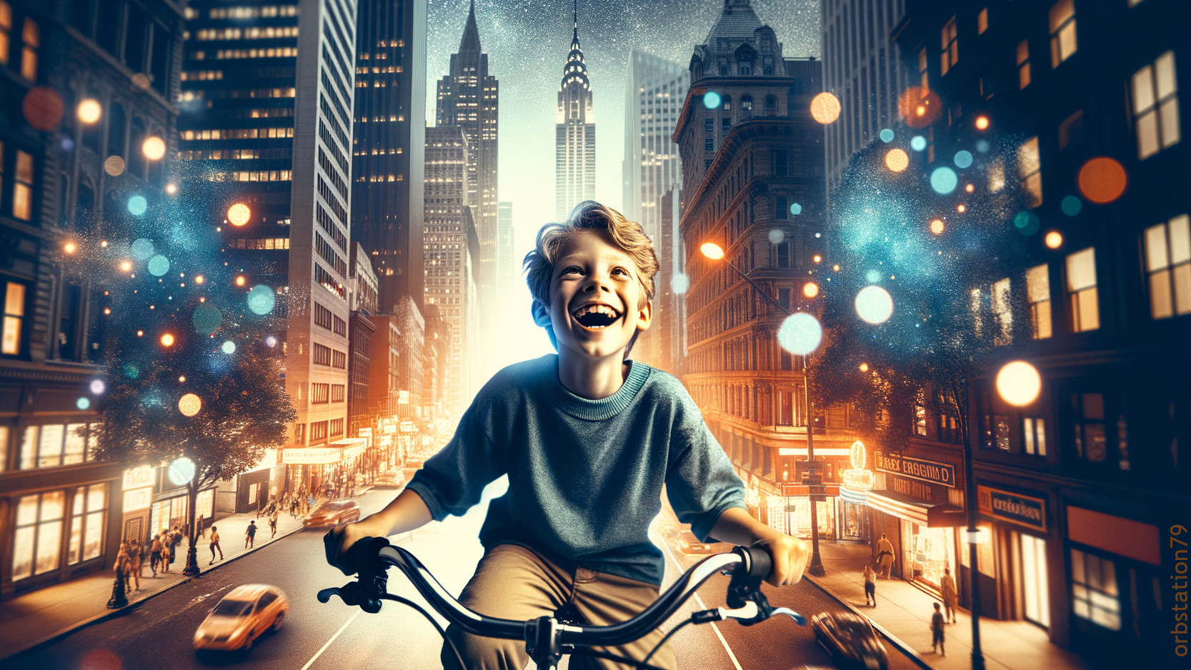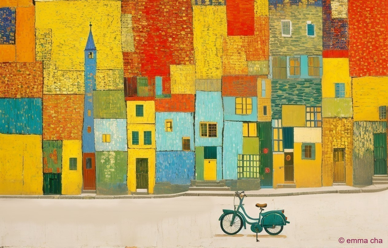 Cityscape Serenity: Blue Bicycle and Block Buildings