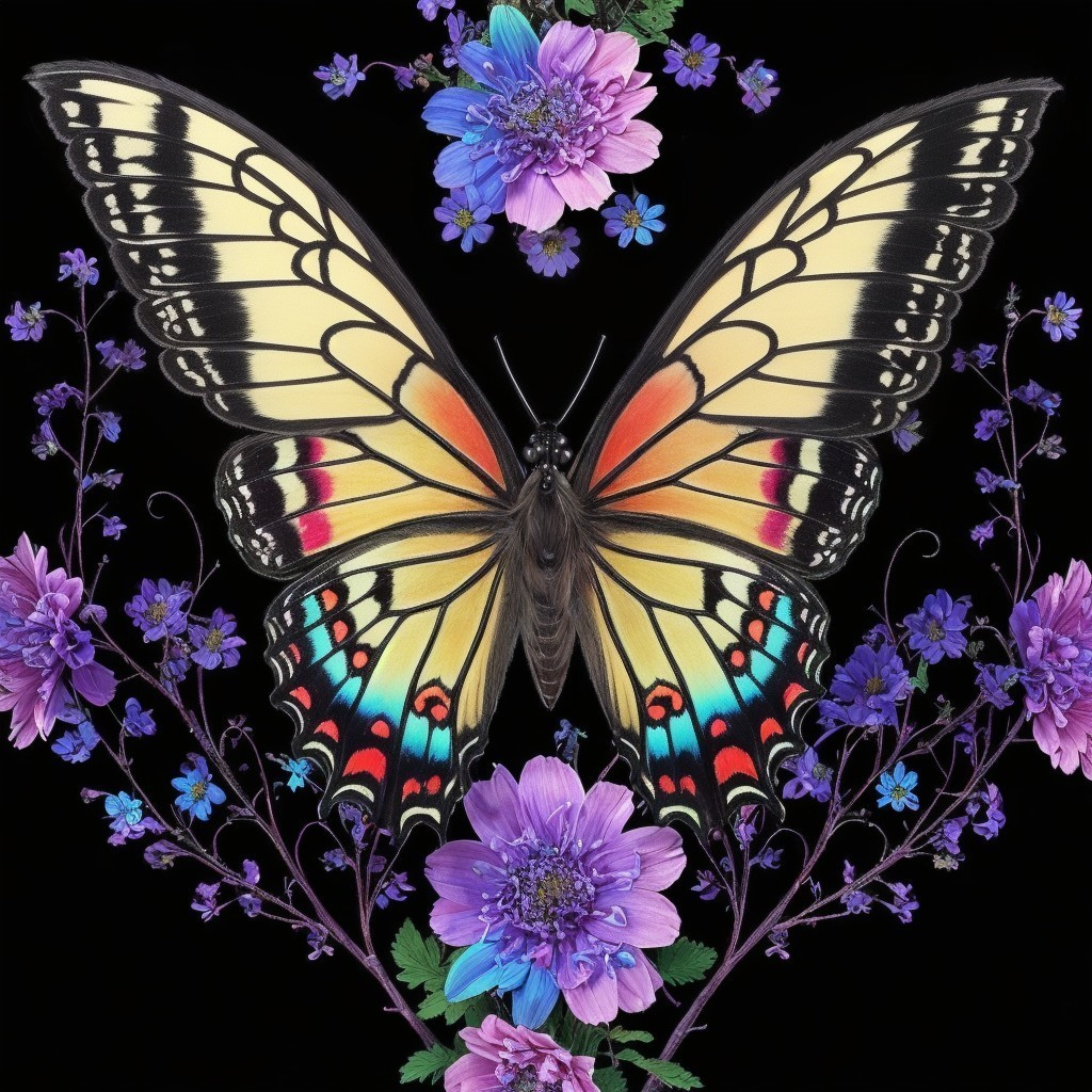 Vibrant Butterfly Amidst Lavender Colored Blooms