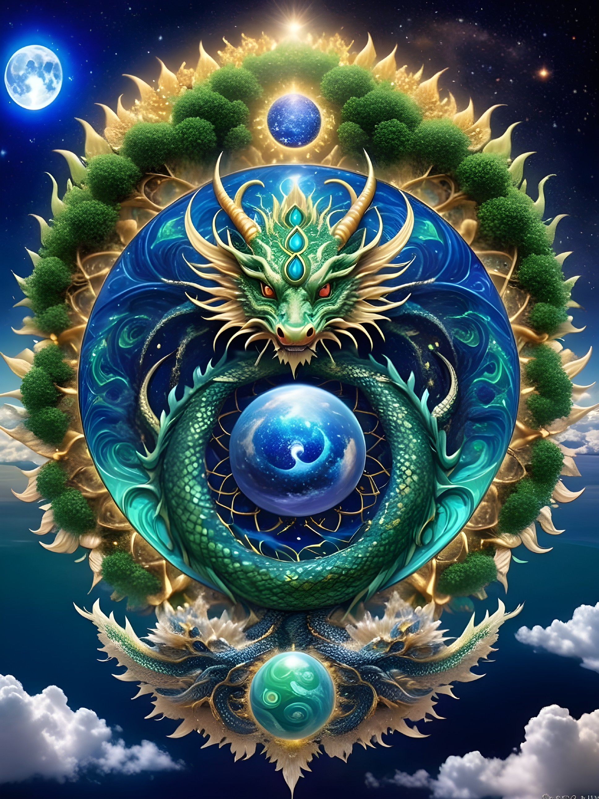 Enigmatic Blue Orb: Who Is She? Helen the Beutiful or Mona Lisa holdin Earth on her palm.