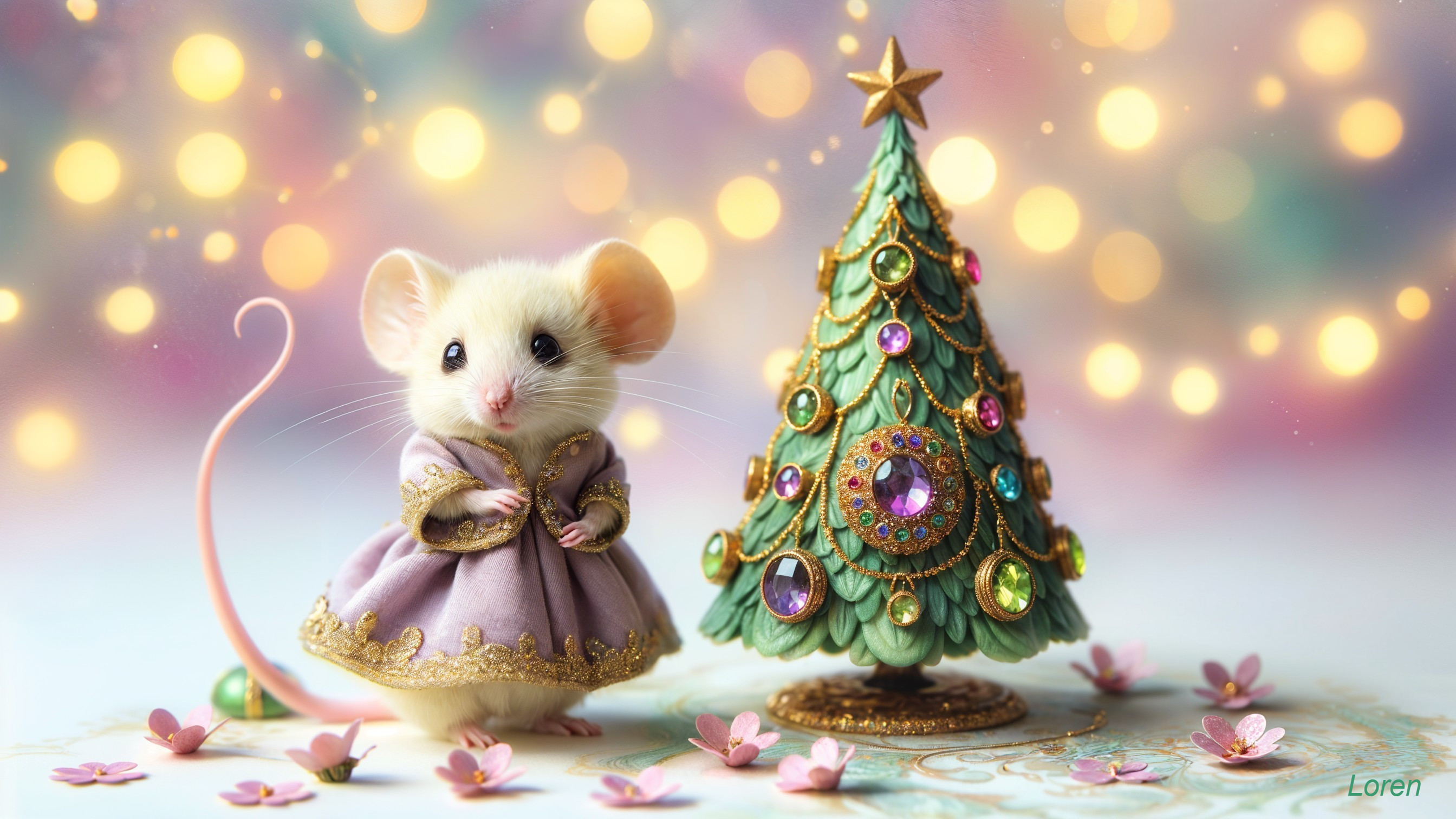 Charming Mouse by a Sparkling Christmas Tree