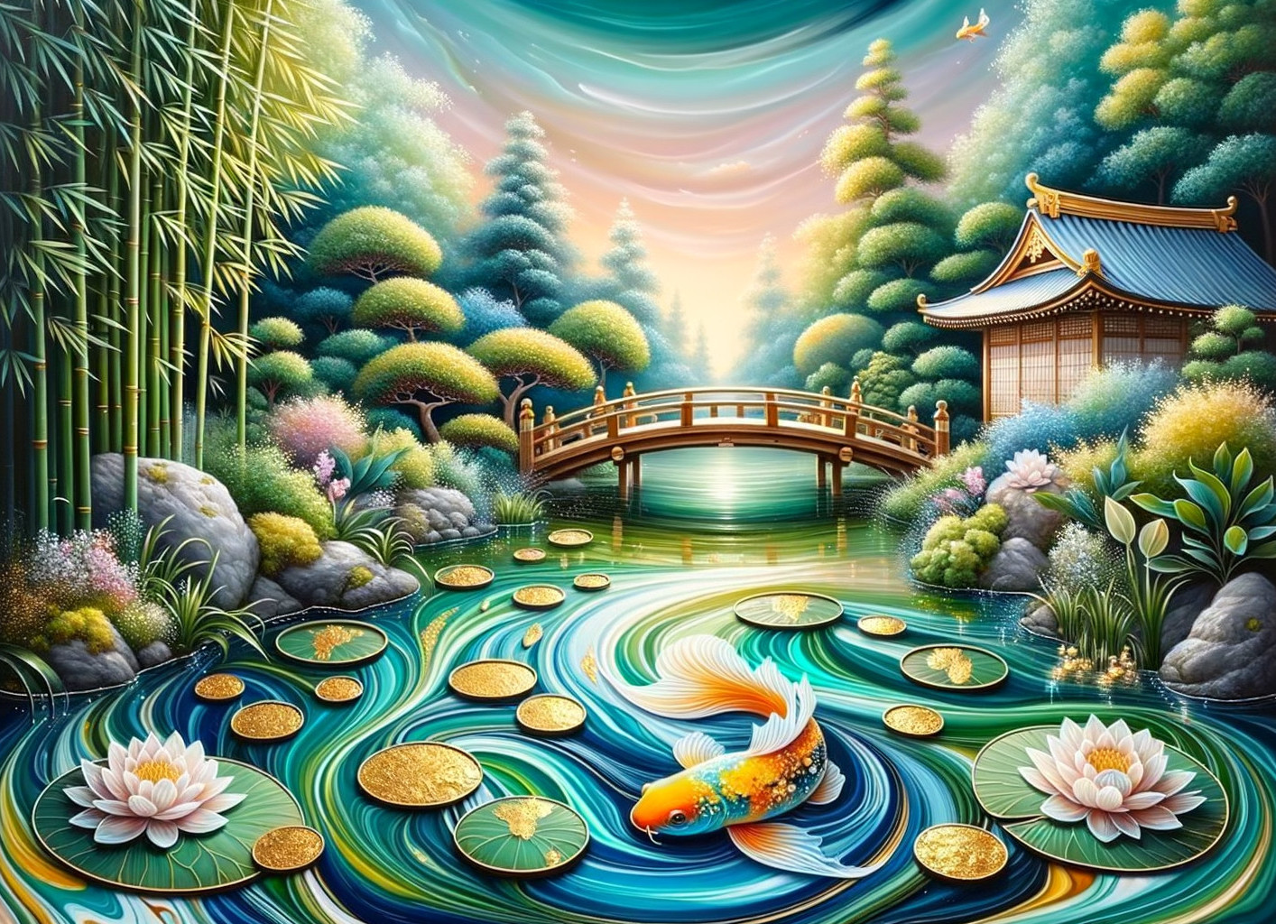 Serene Koi Pond: A Vibrant Watercolor Scene