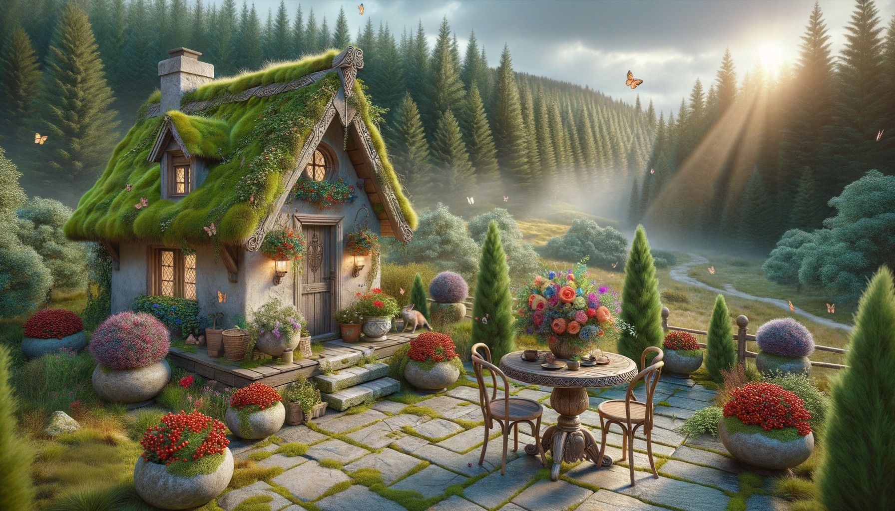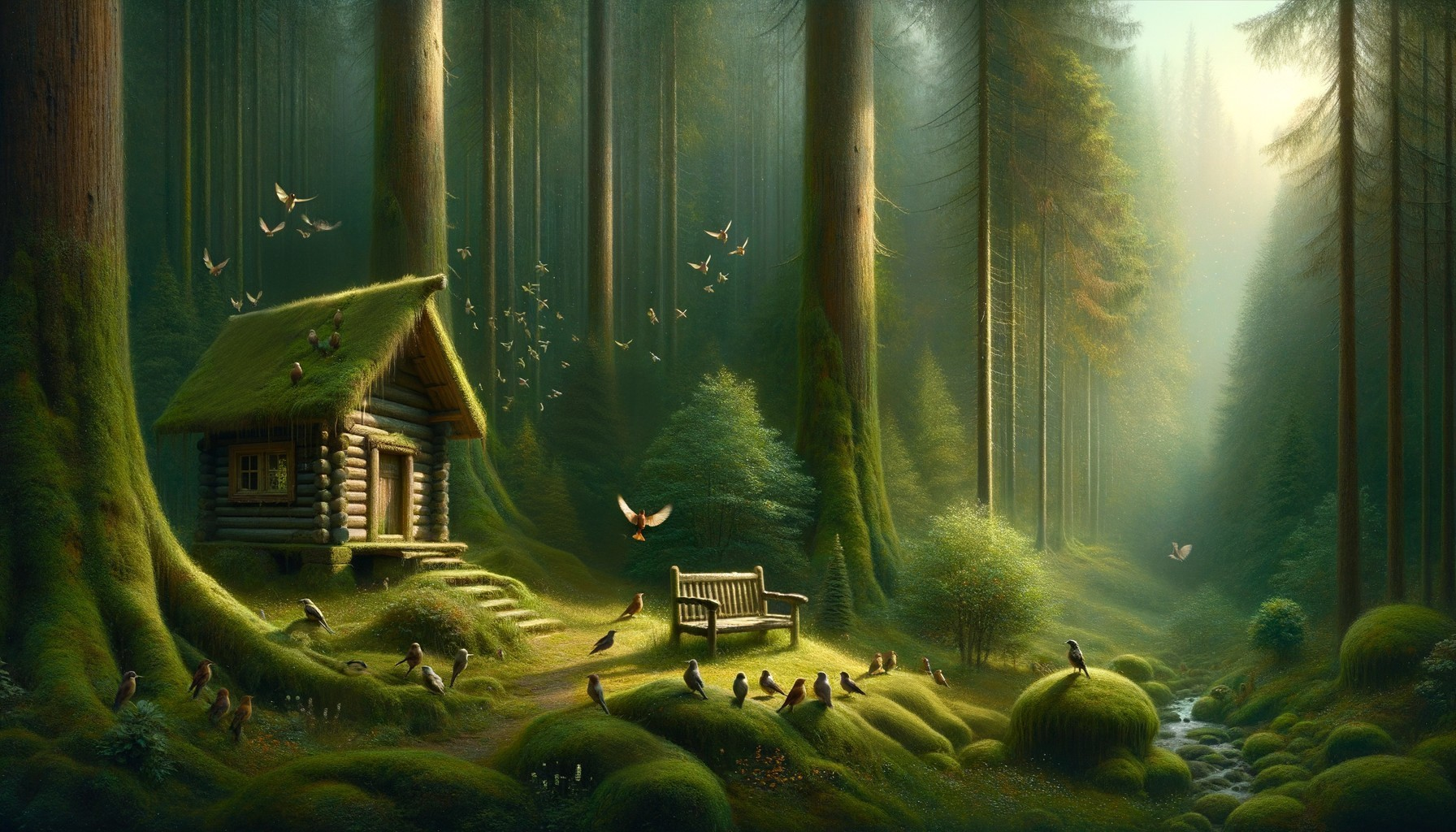 Dawn's Golden Embrace: Mountain Cabin Serenity