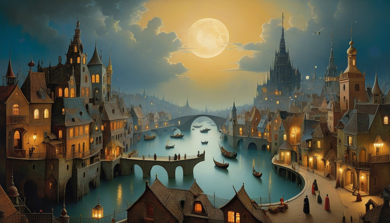 Venice at Sunset: Gondolas and Canals (picture of Venice painted on birch bark)