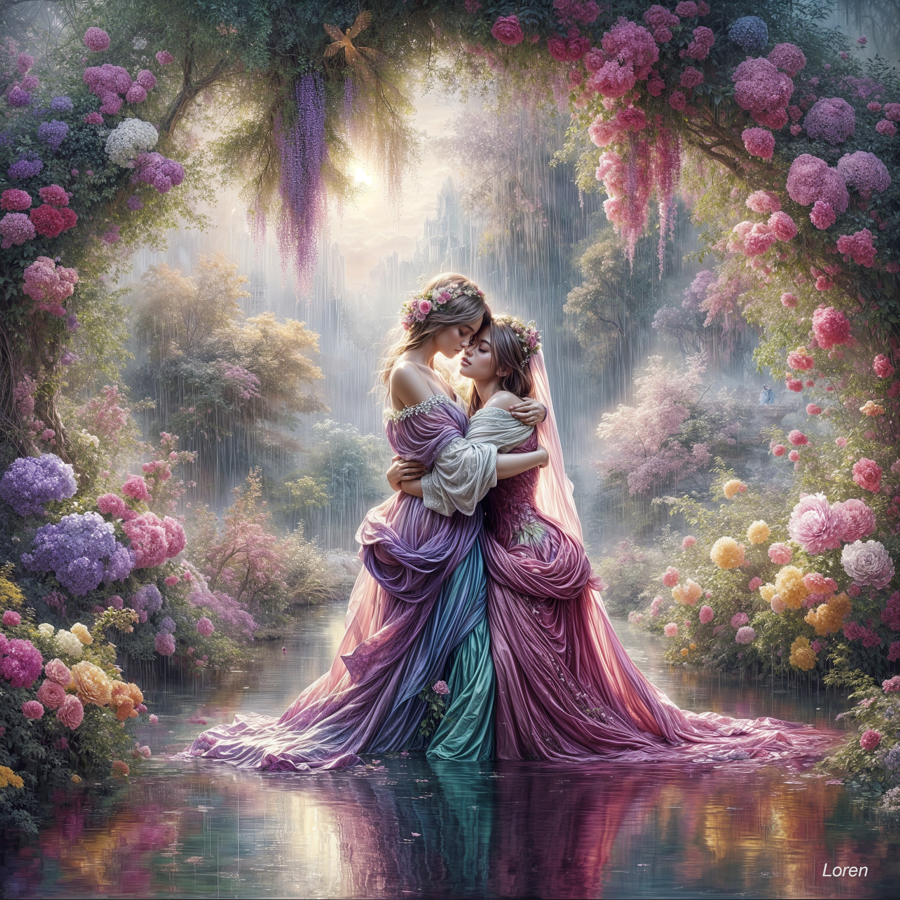 Embrace of Love in a Magical Garden