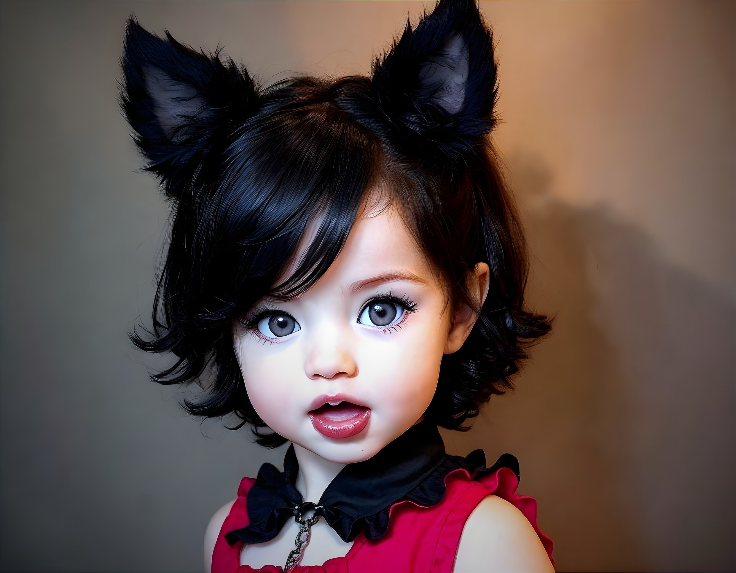 Enigmatic Feline: Green-Eyed Inked Beauty