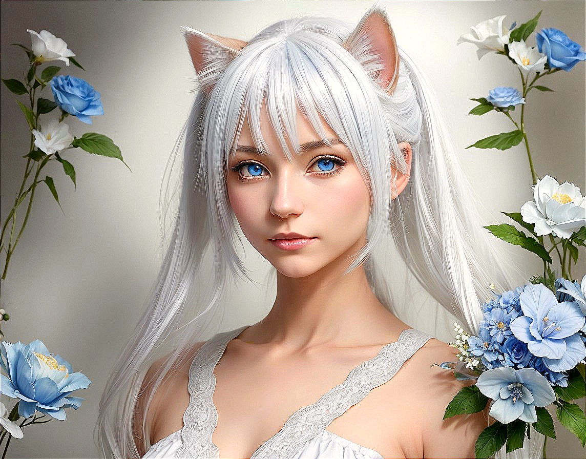Whimsical Cat-Eared Portrait in Floral Bliss