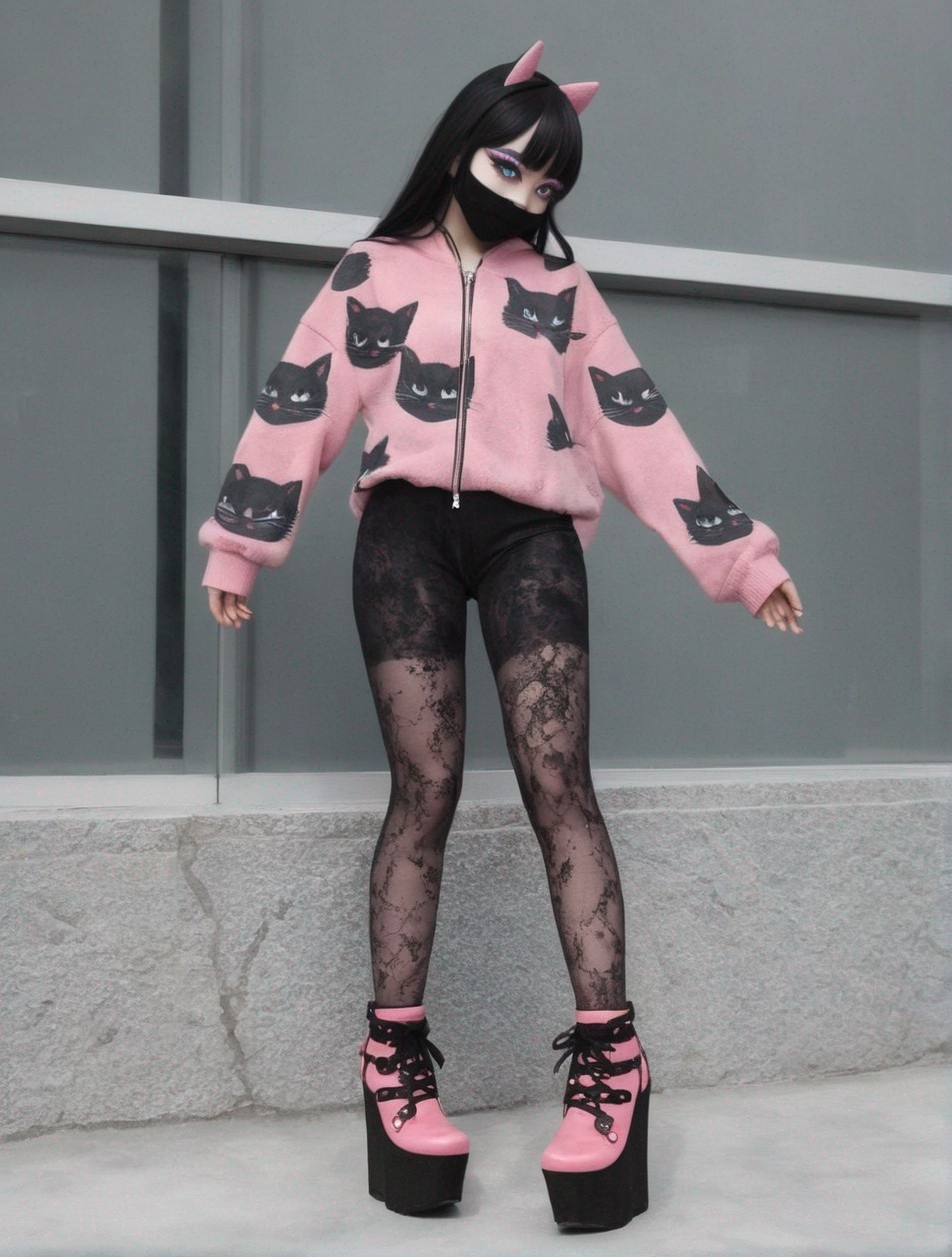 black & pink fashion cat girl posing