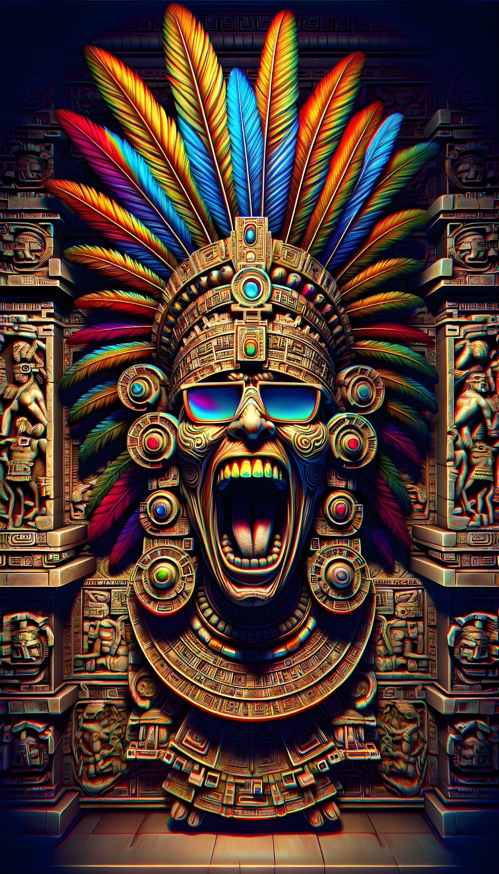 Aztec Deity Watching the Solar Eclipse in Awe
