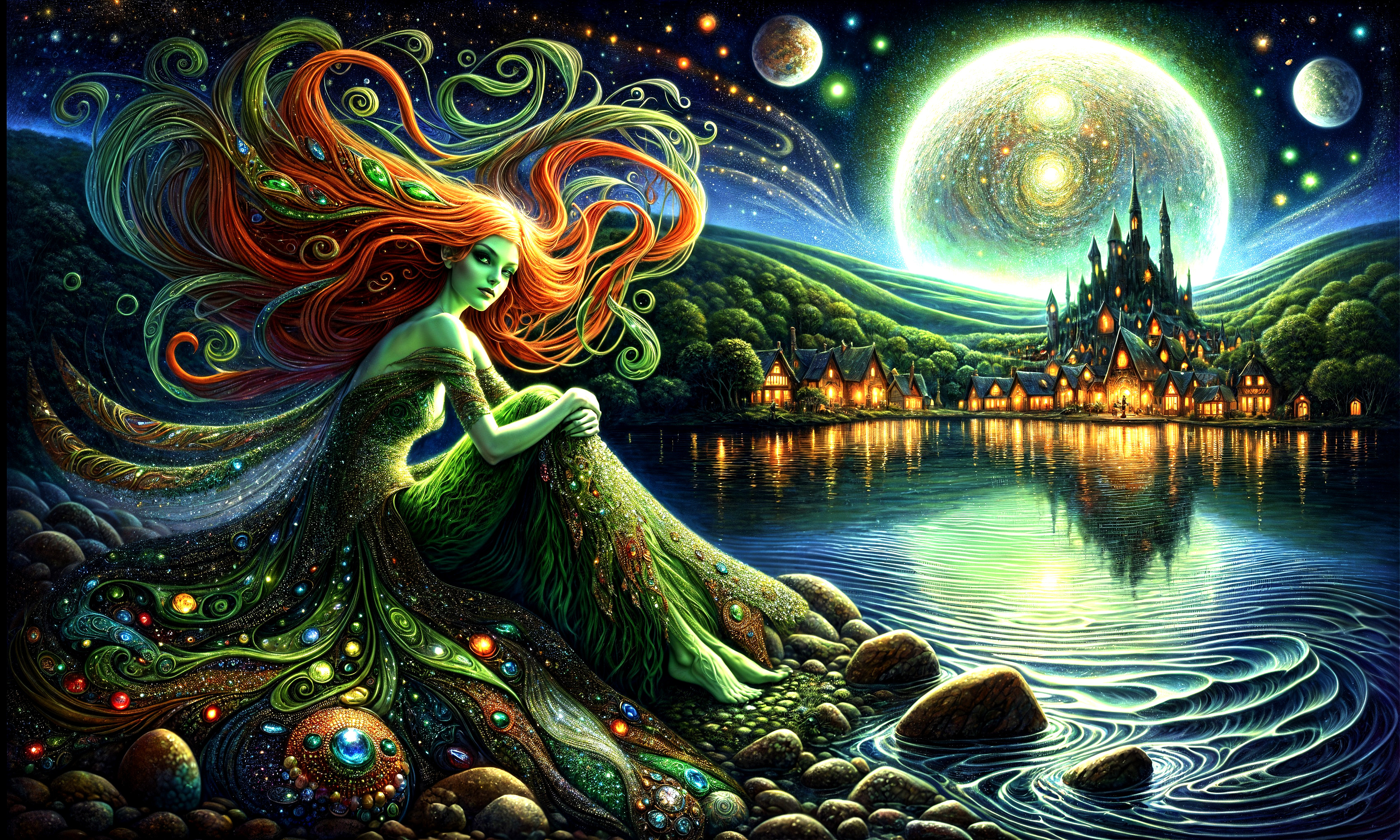 Mystical Woman by the Shimmering Lake