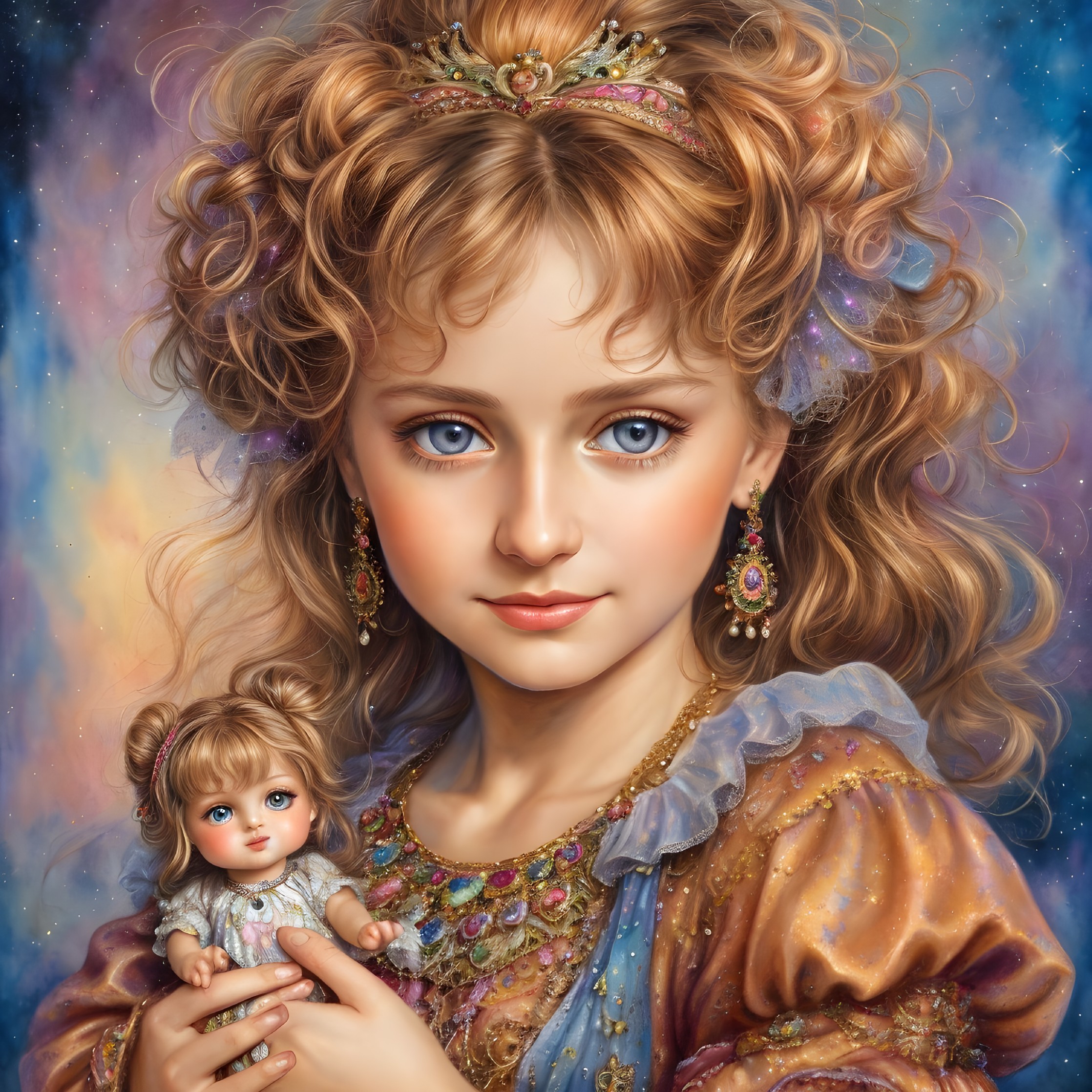 Celestial Beauty: Blue-Gold Portrait