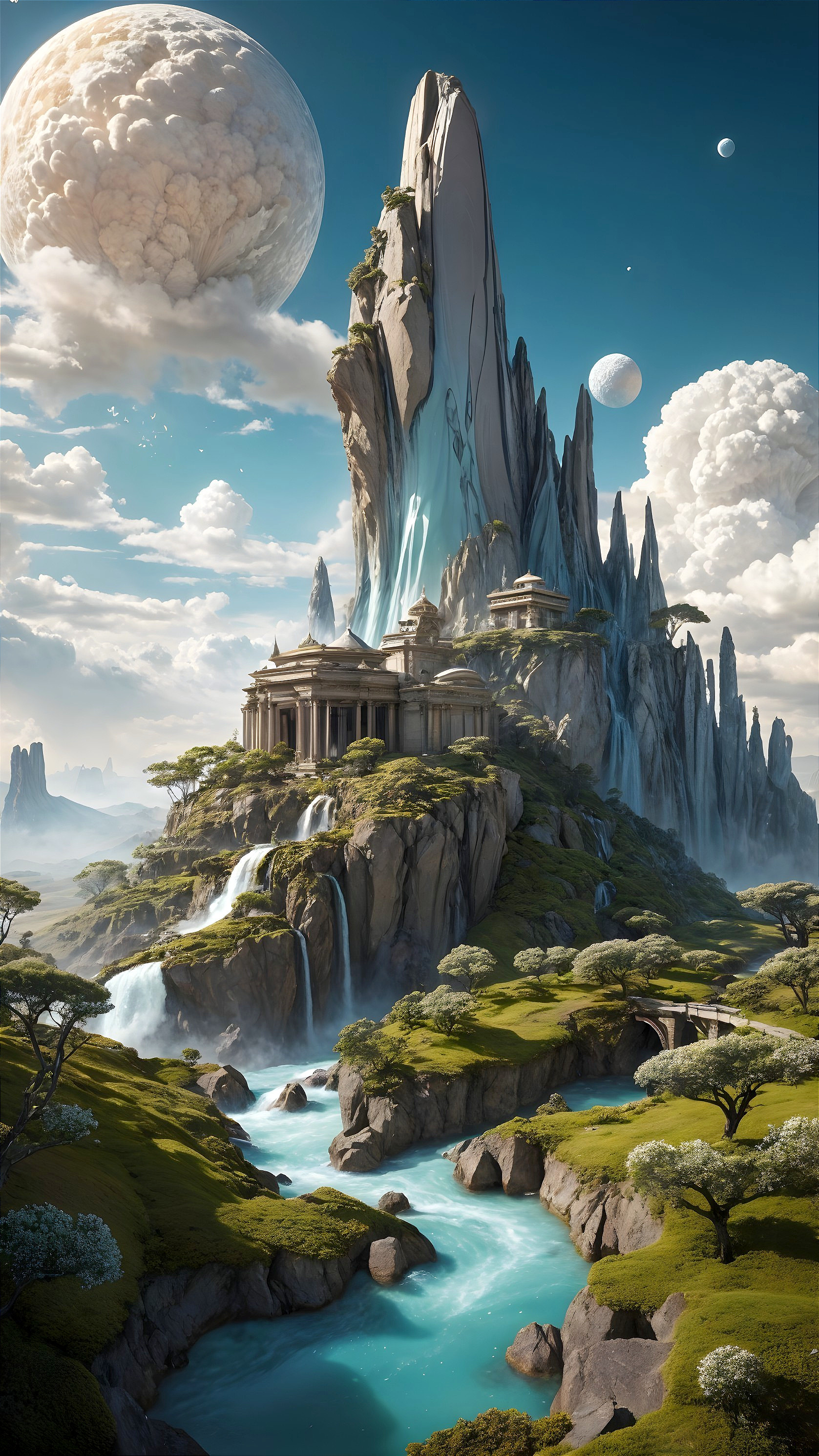 Celestial Serenity: A Surreal Temple Vista