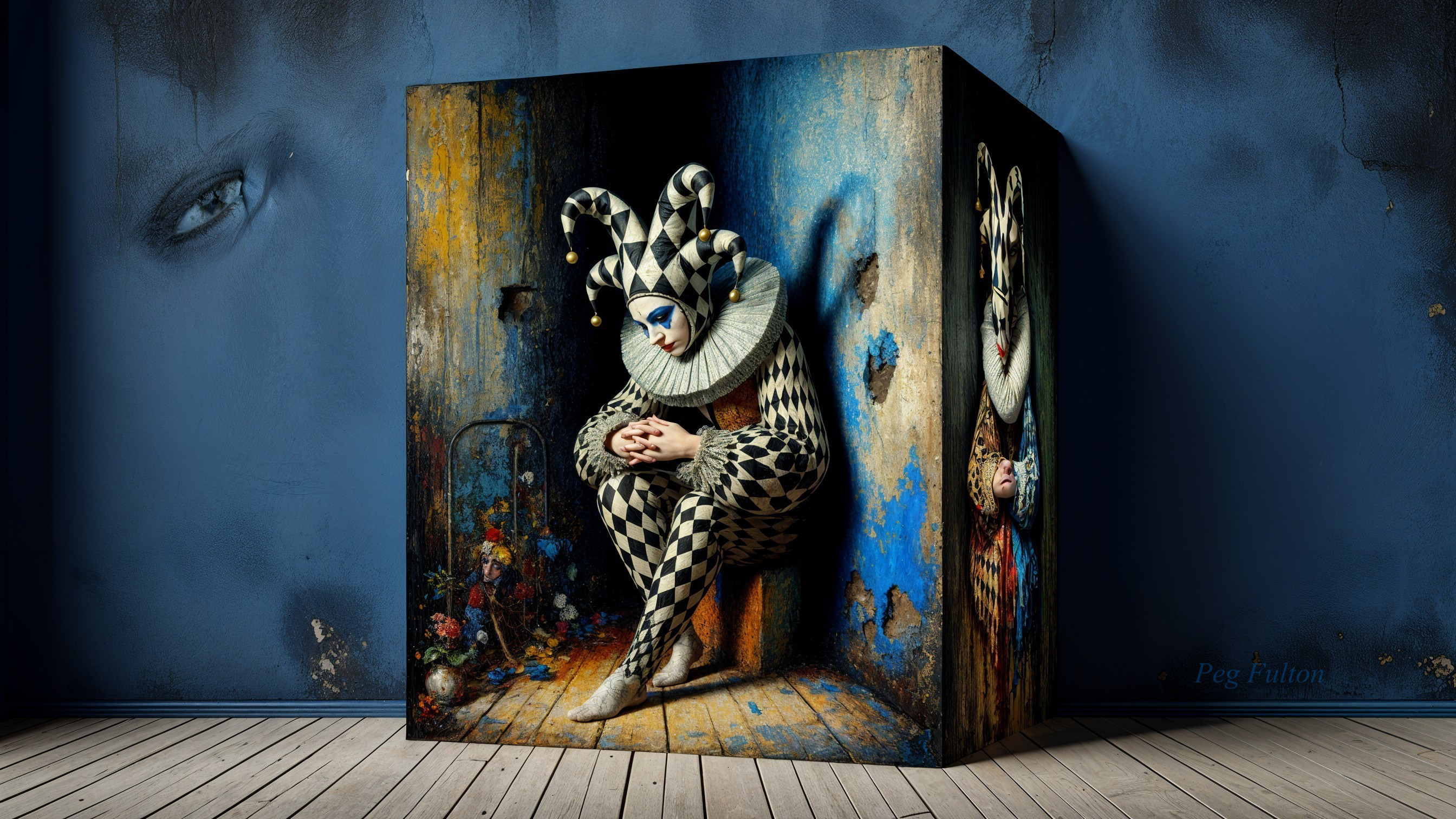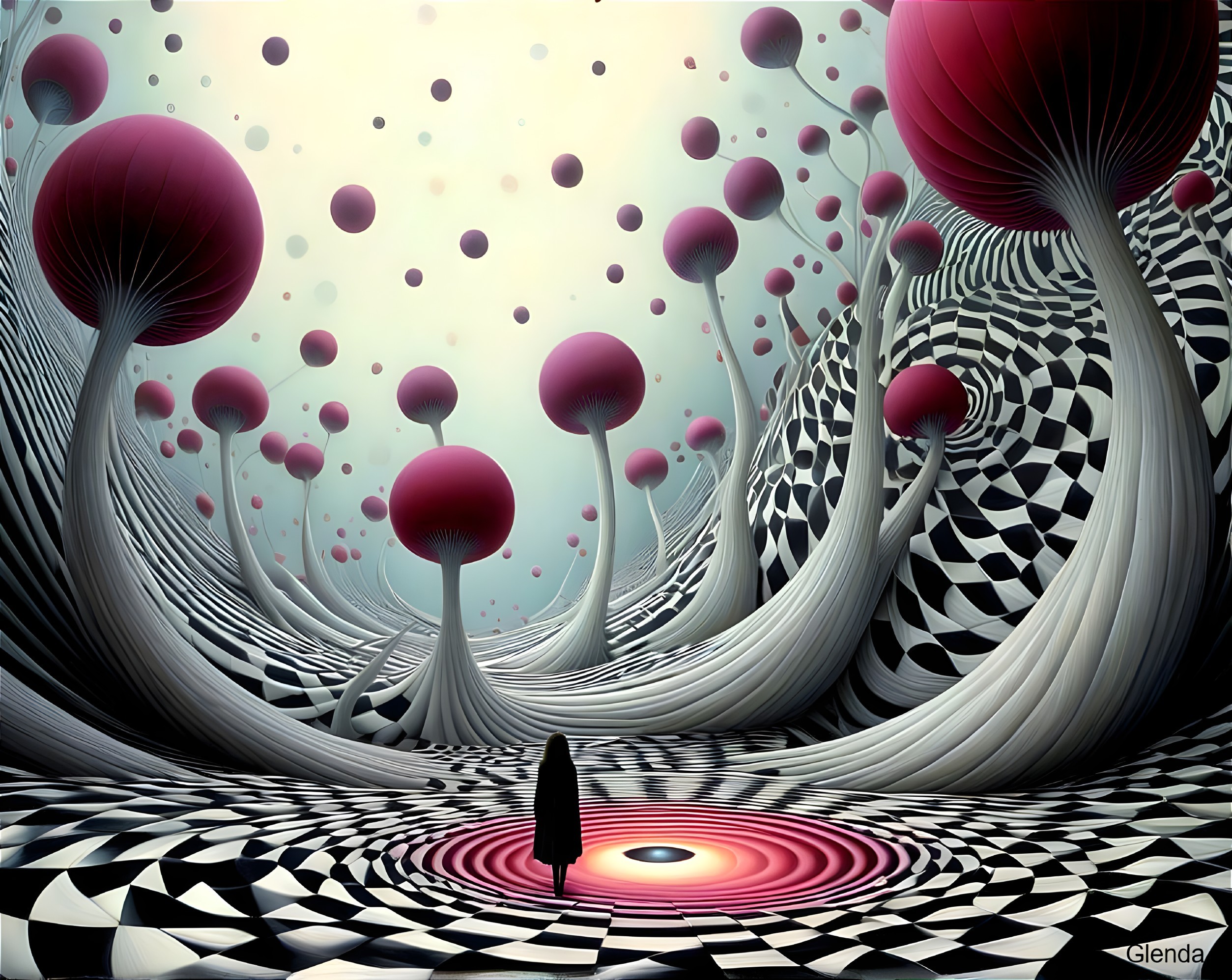 Enigmatic Figure in Surreal Checkerboard Landscape