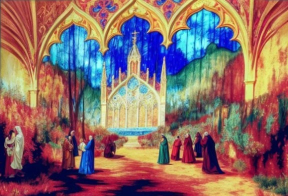 Ethereal Church at Sunset: A Colorful Vision