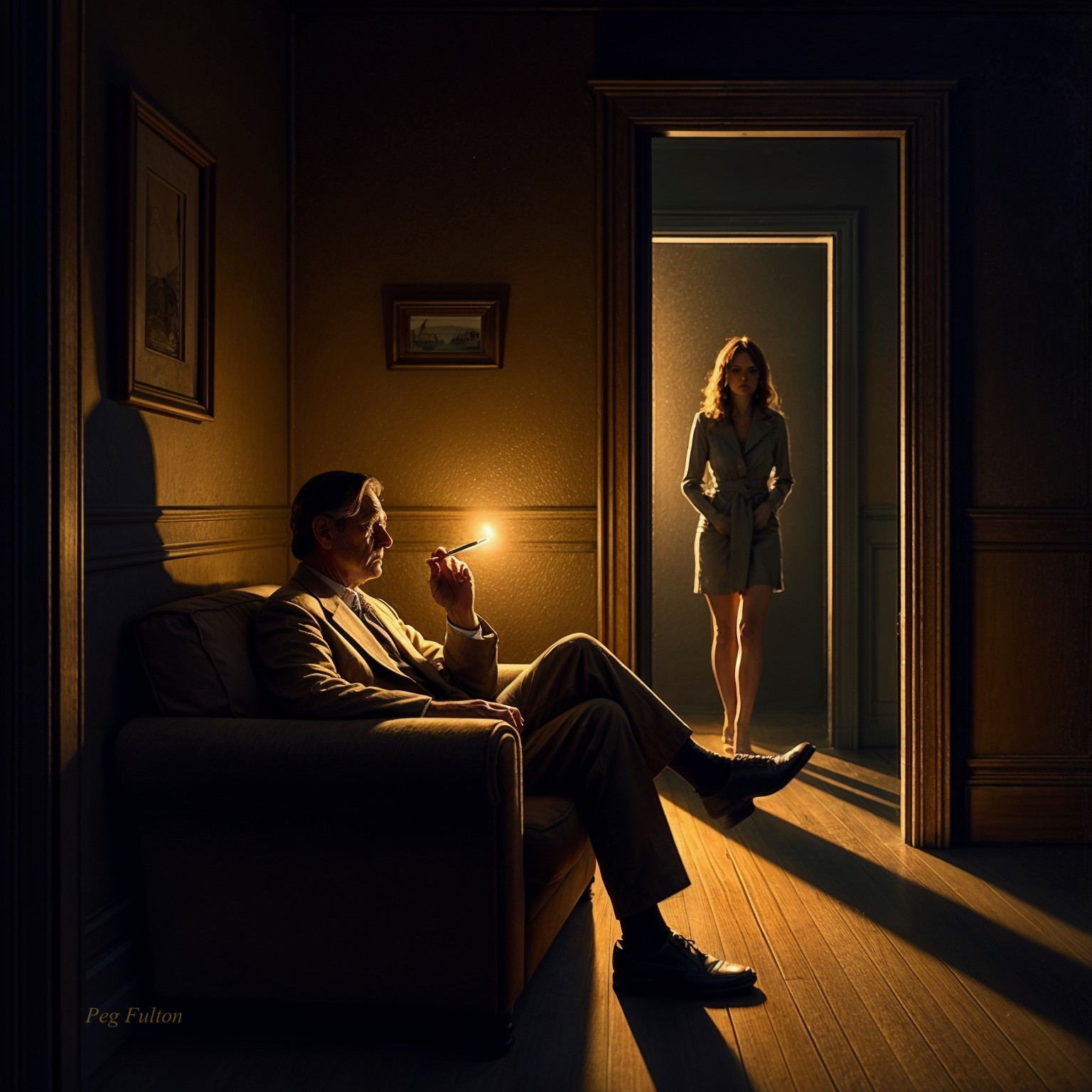 My father sits at night with no lights on. His cigarette glows in the dark…