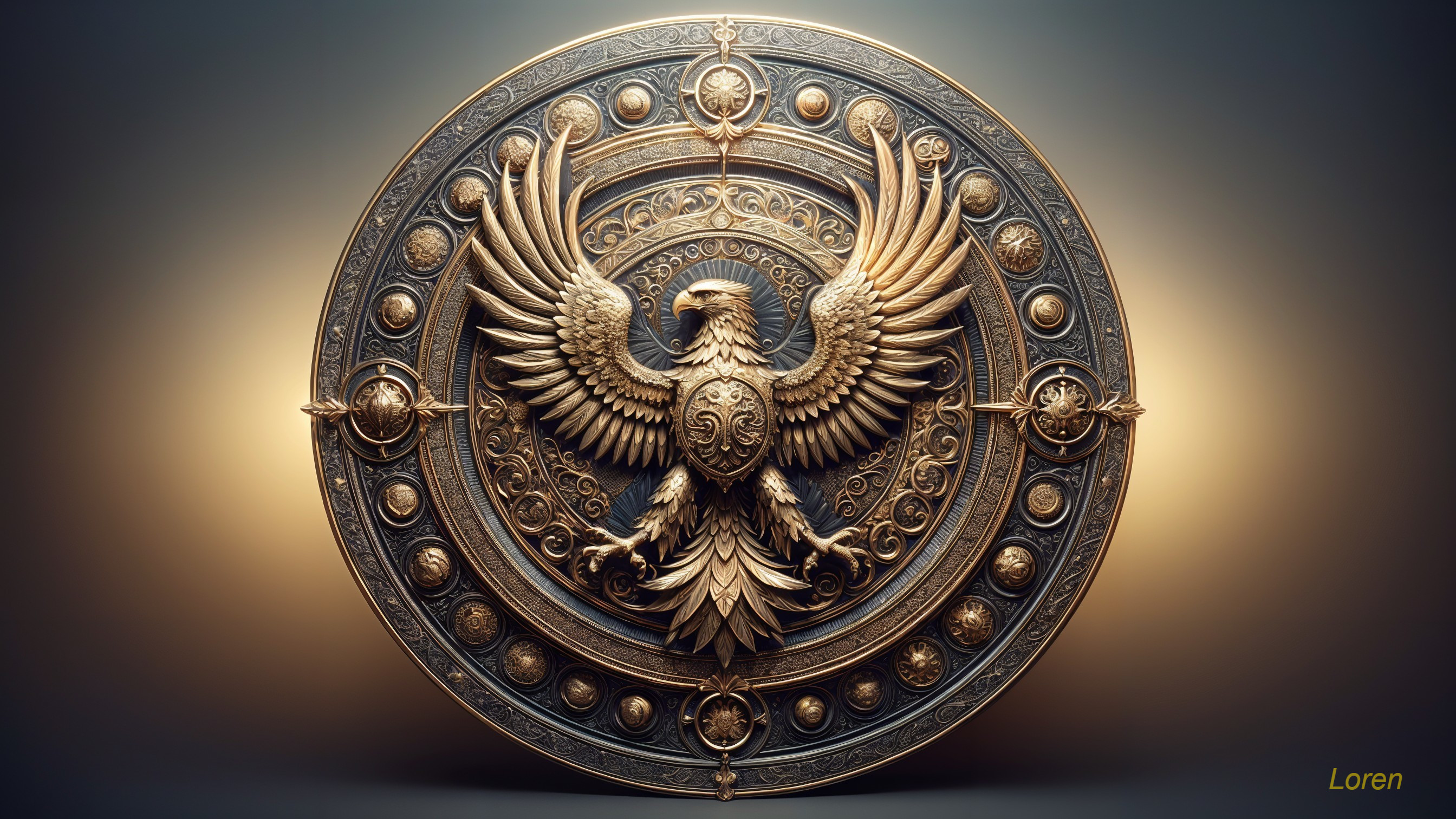 Majestic Eagle Shield in Gold and Metal