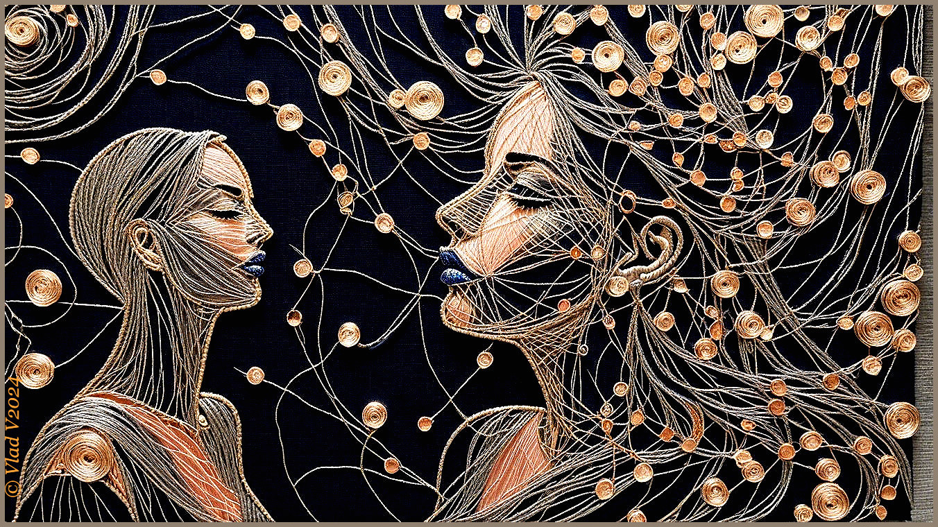 Interconnected Faces in Vibrant Patterns