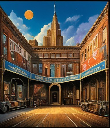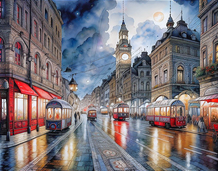 Urban Journey: Vintage Bus Meets Futuristic Sky