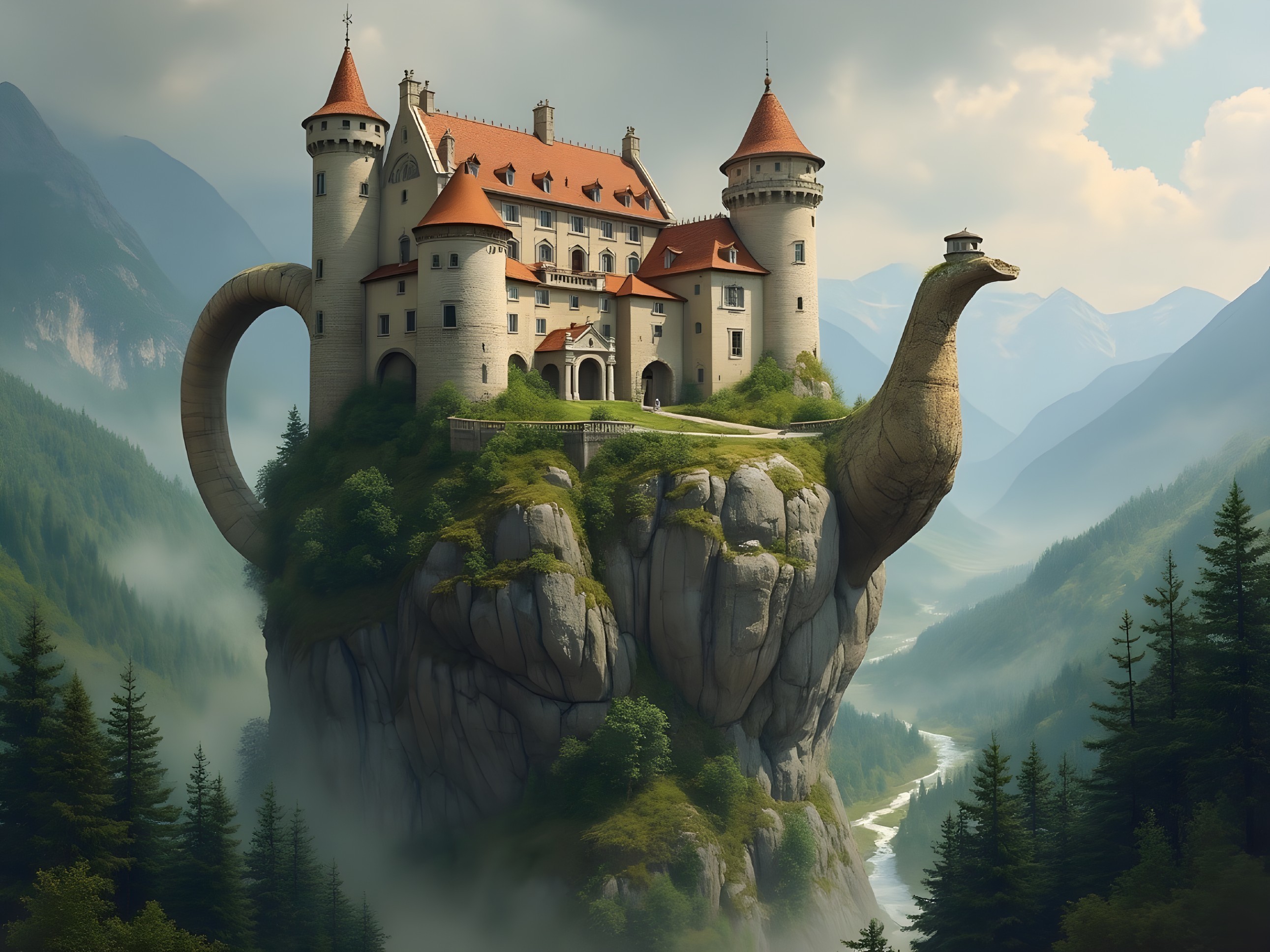Whimsical Castle in a Misty Wonderland