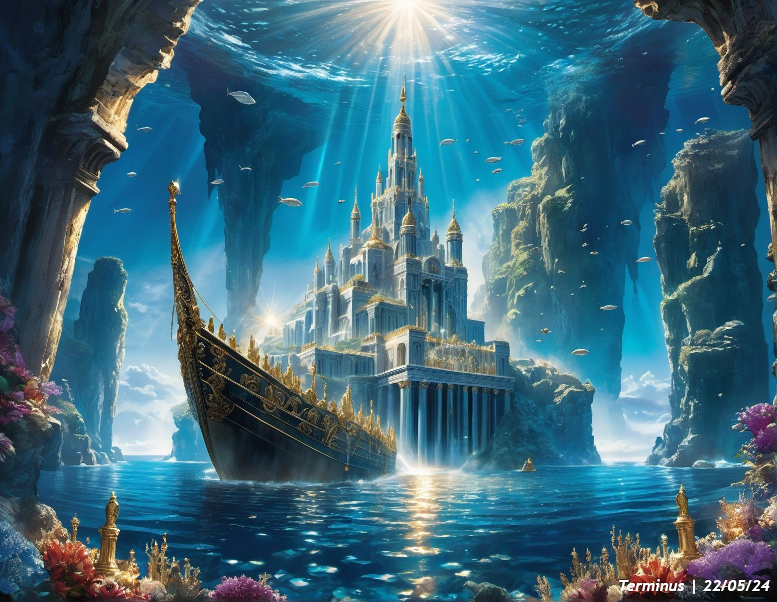 Golden Horizon: Cliffs, Ocean, Boat