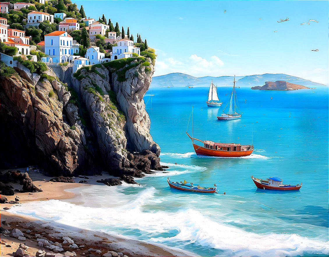 Tranquil Beach Scene: Cliffs, Tide Pool, and Strollers