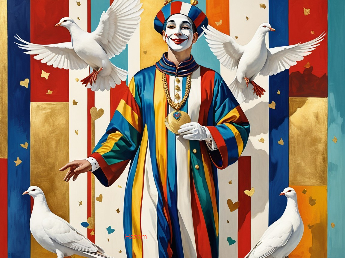 Clown Amidst Doves and Hearts
