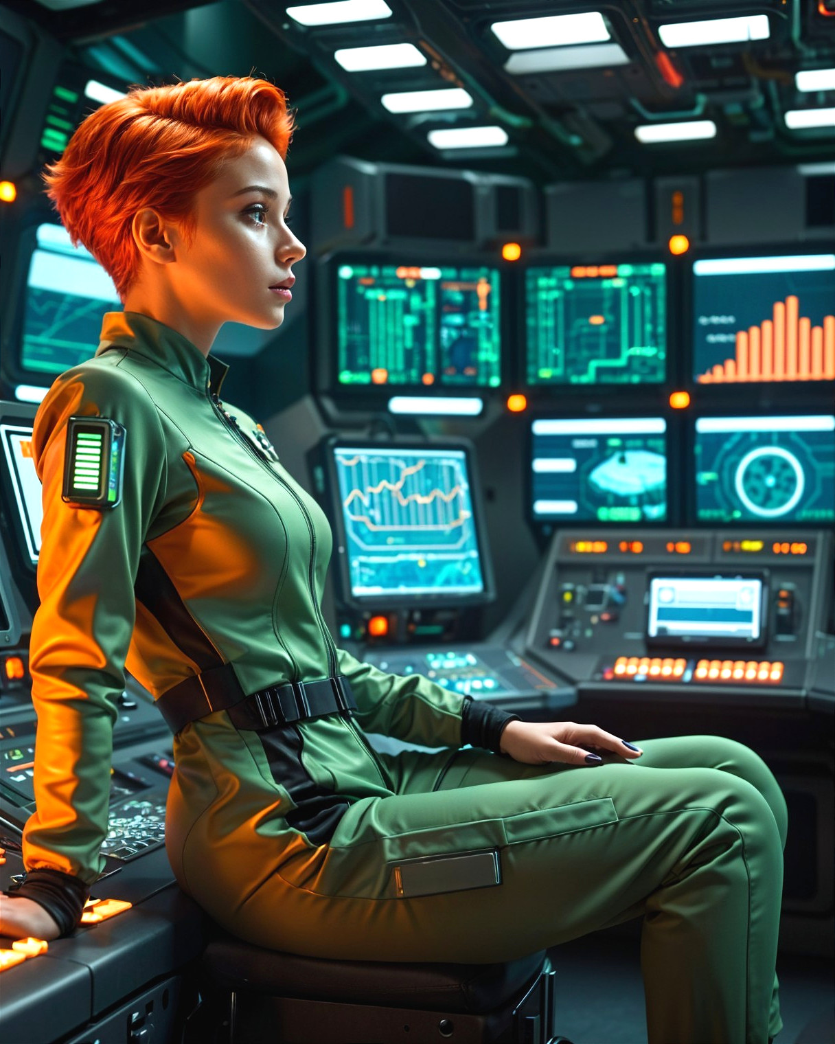 Confident Woman in Futuristic Control Room