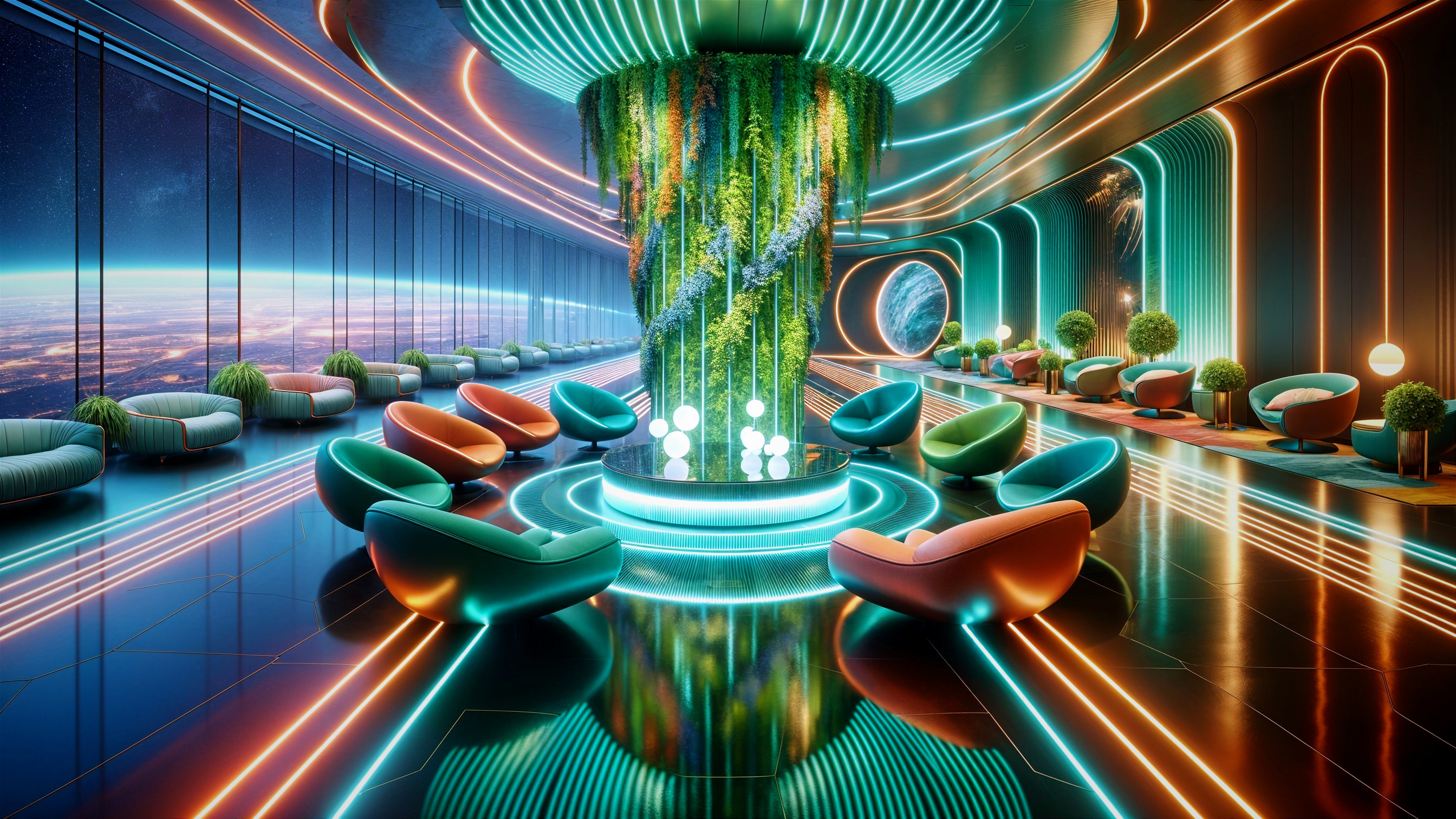 Neon Oasis: A Cosmic Lounge Experience