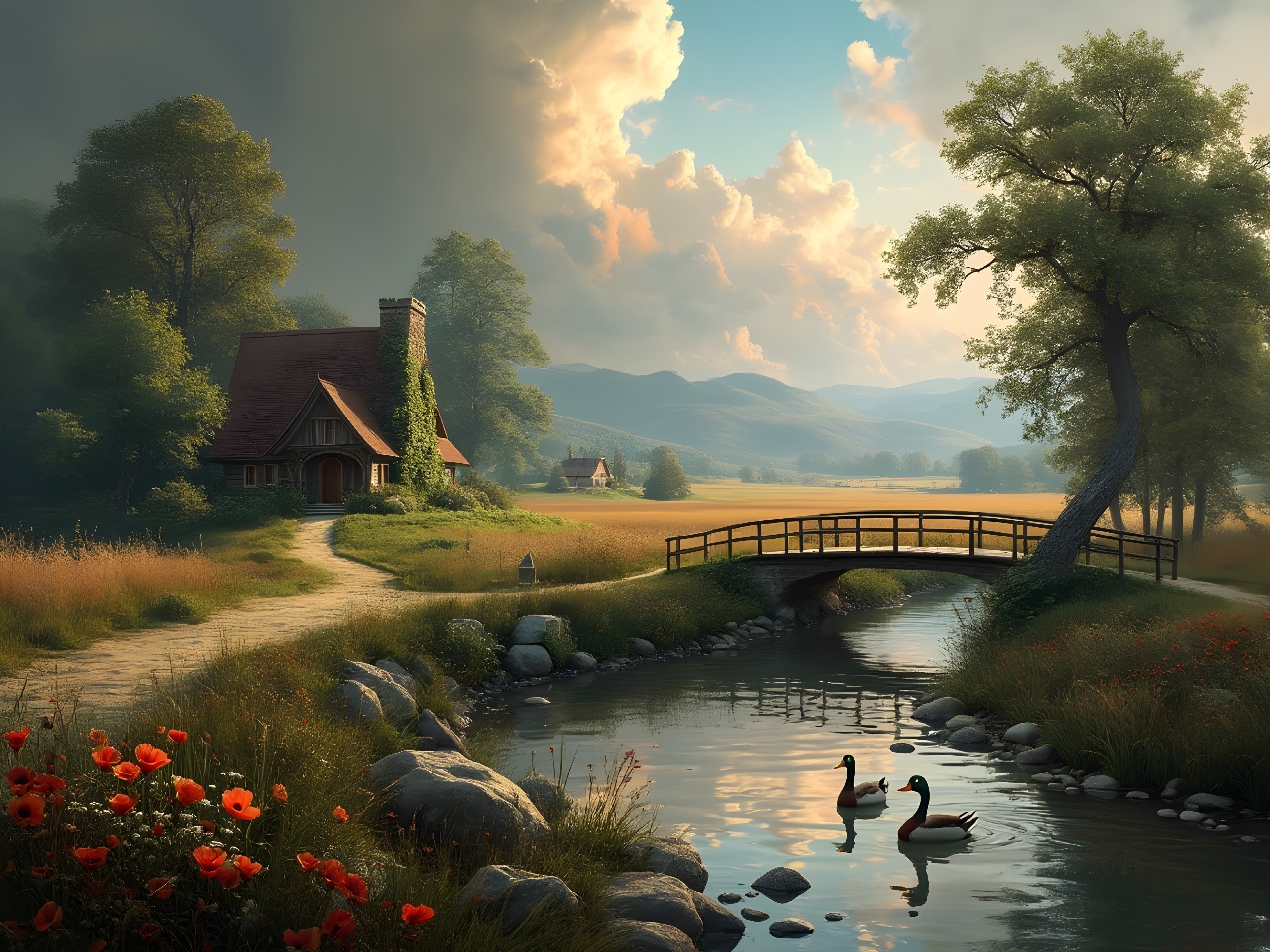 Tranquil Cottage by the Winding Stream