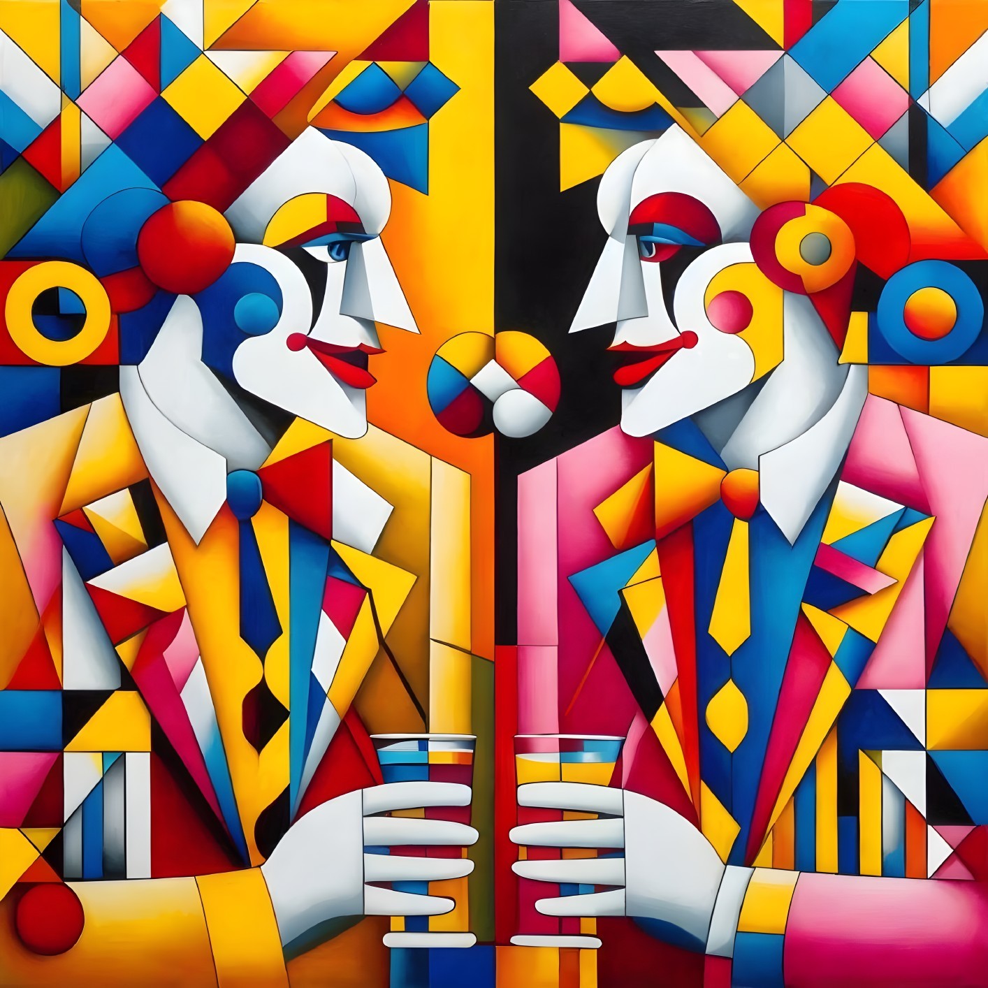 Vivid Geometric Portrait in Abstract Cubism