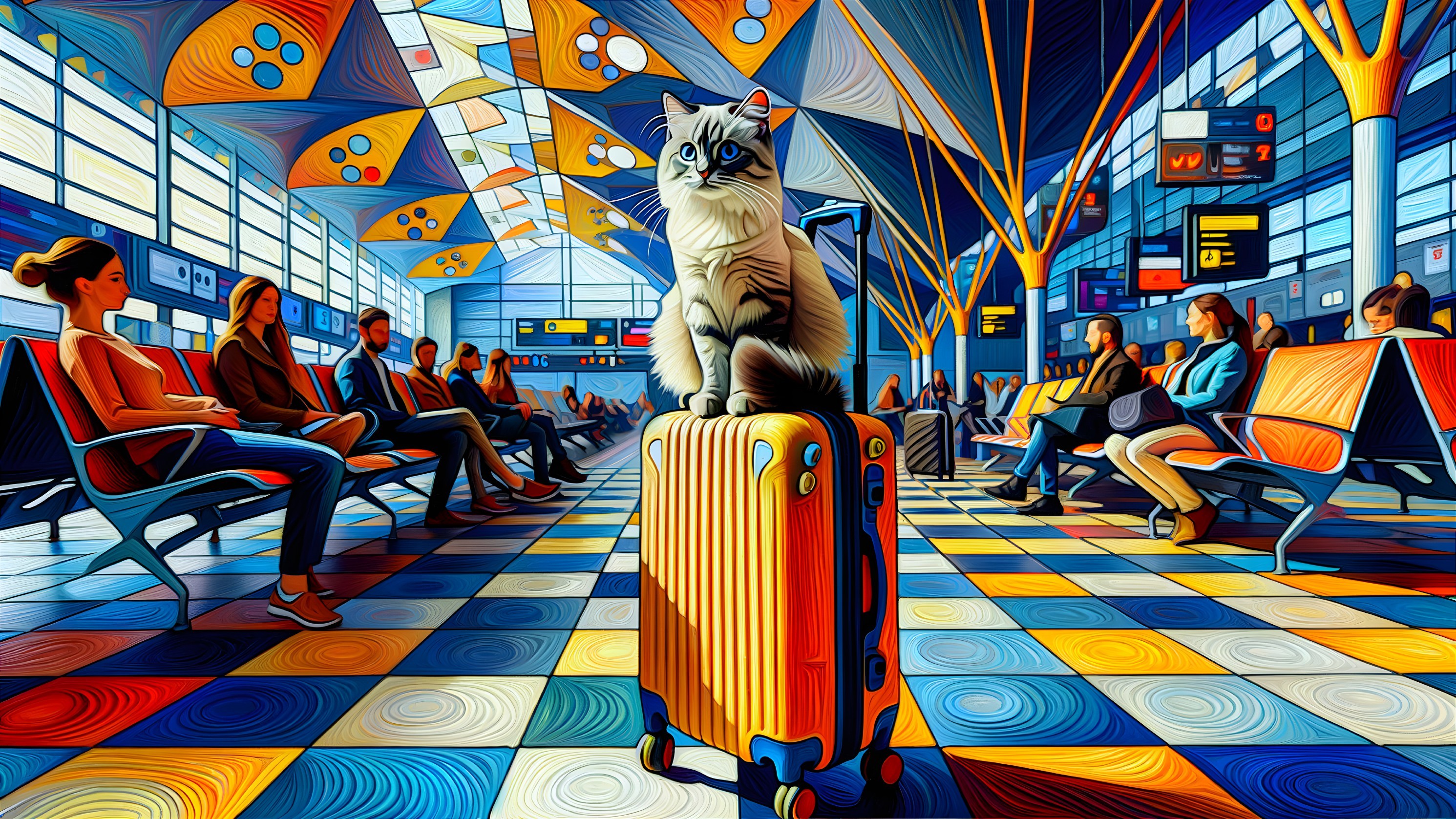 Feline Wanderlust: Cubist Cat on Wheels