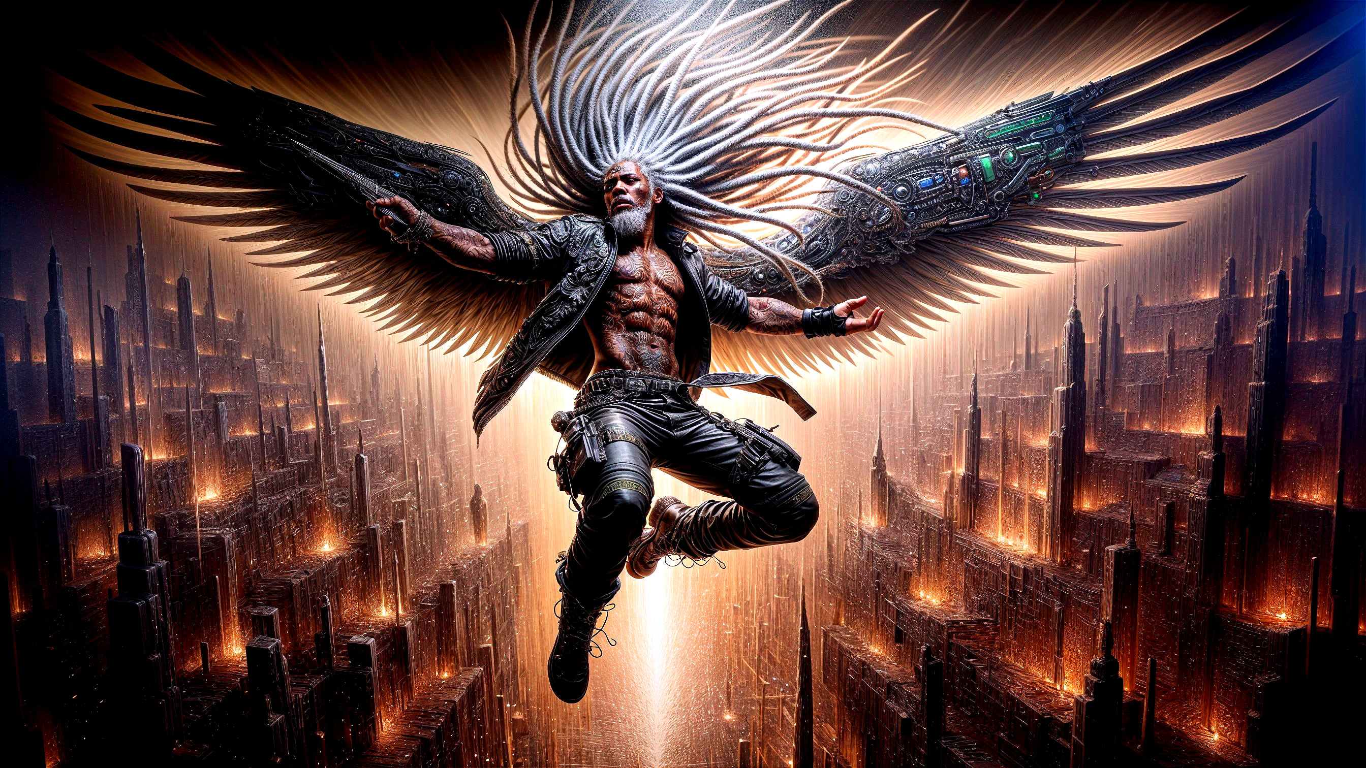 Cyberpunk Angel Over Cityscape Masterpiece