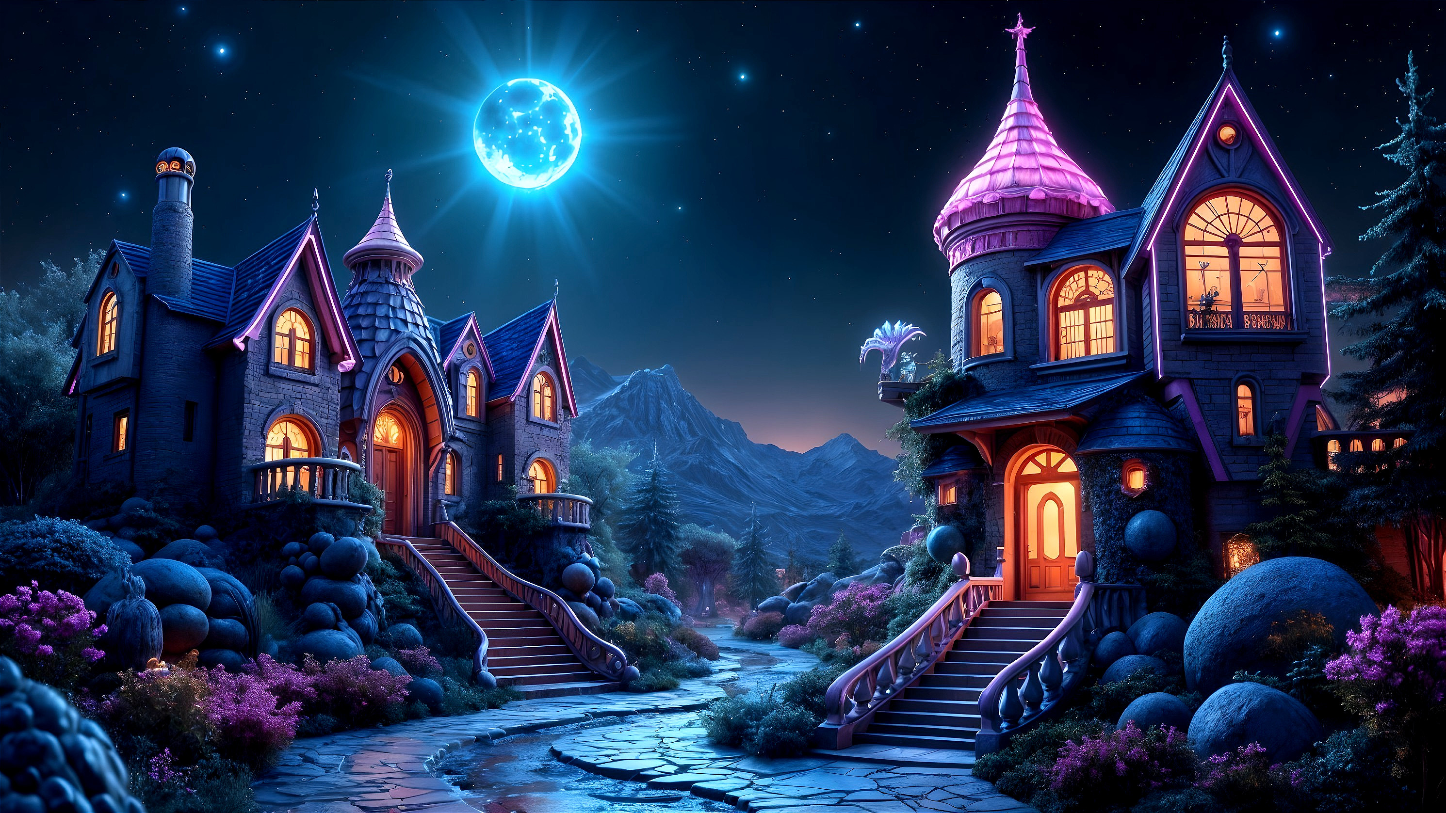 Surreal Cyberpunk Fantasy Homes Under Stars