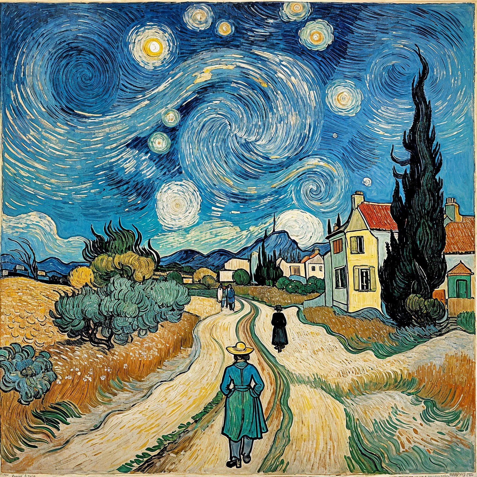 Starry Night Village: Impressionist Masterpiece