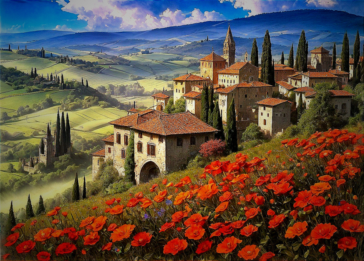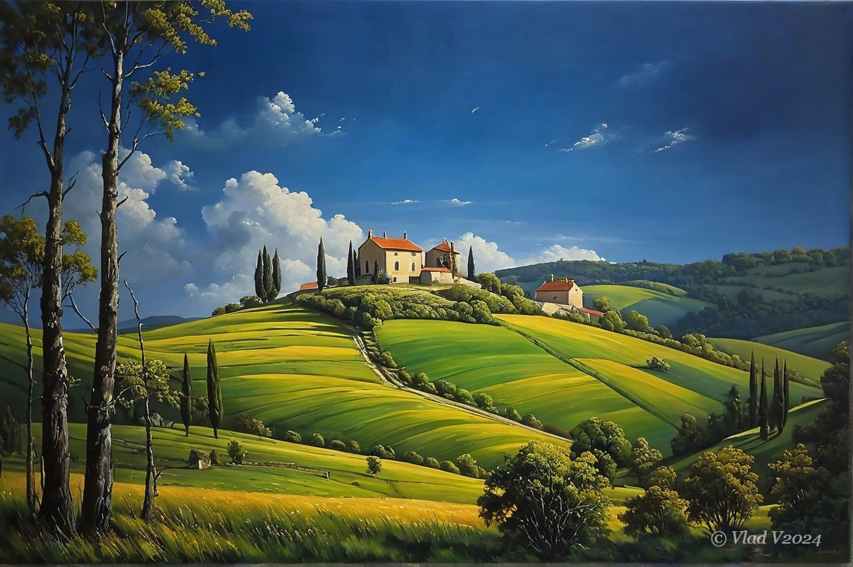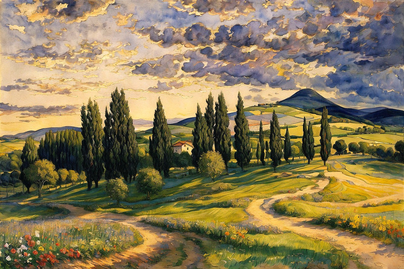 Tuscan Twilight: Cypress Hills & Villa