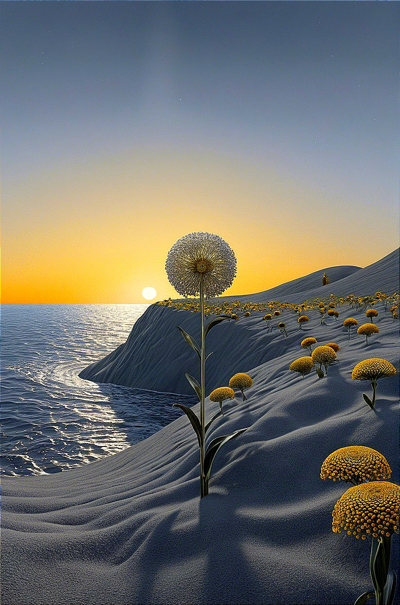 Golden Sunset Over Sandy Shore Blooms