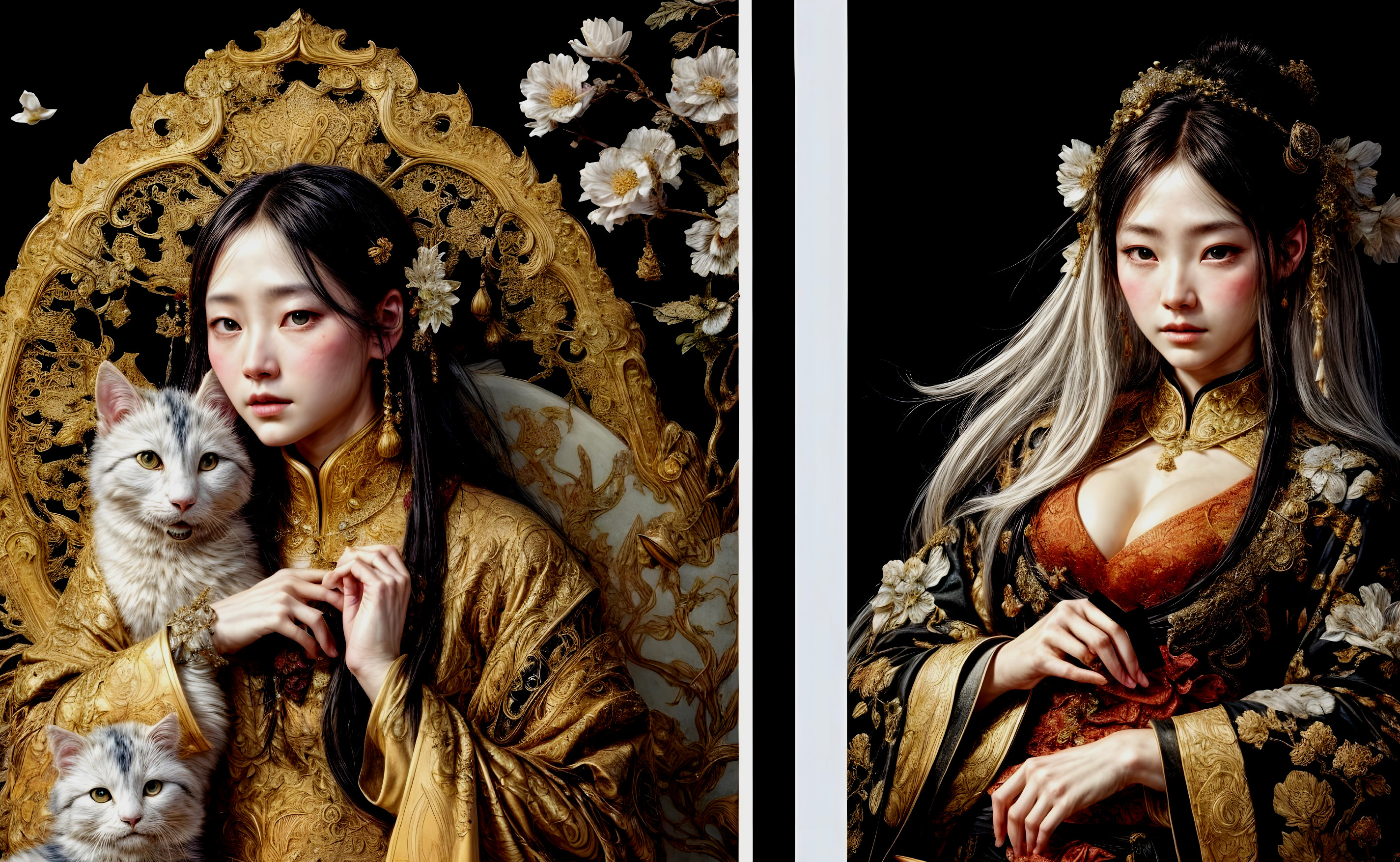 Elegant Portrait in Blue Kimono Floral Elegance
