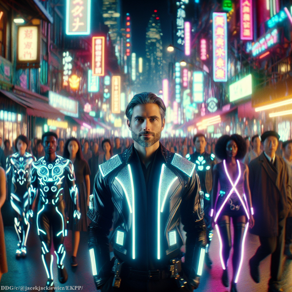 Heroic Stand in a Neon Futuristic City