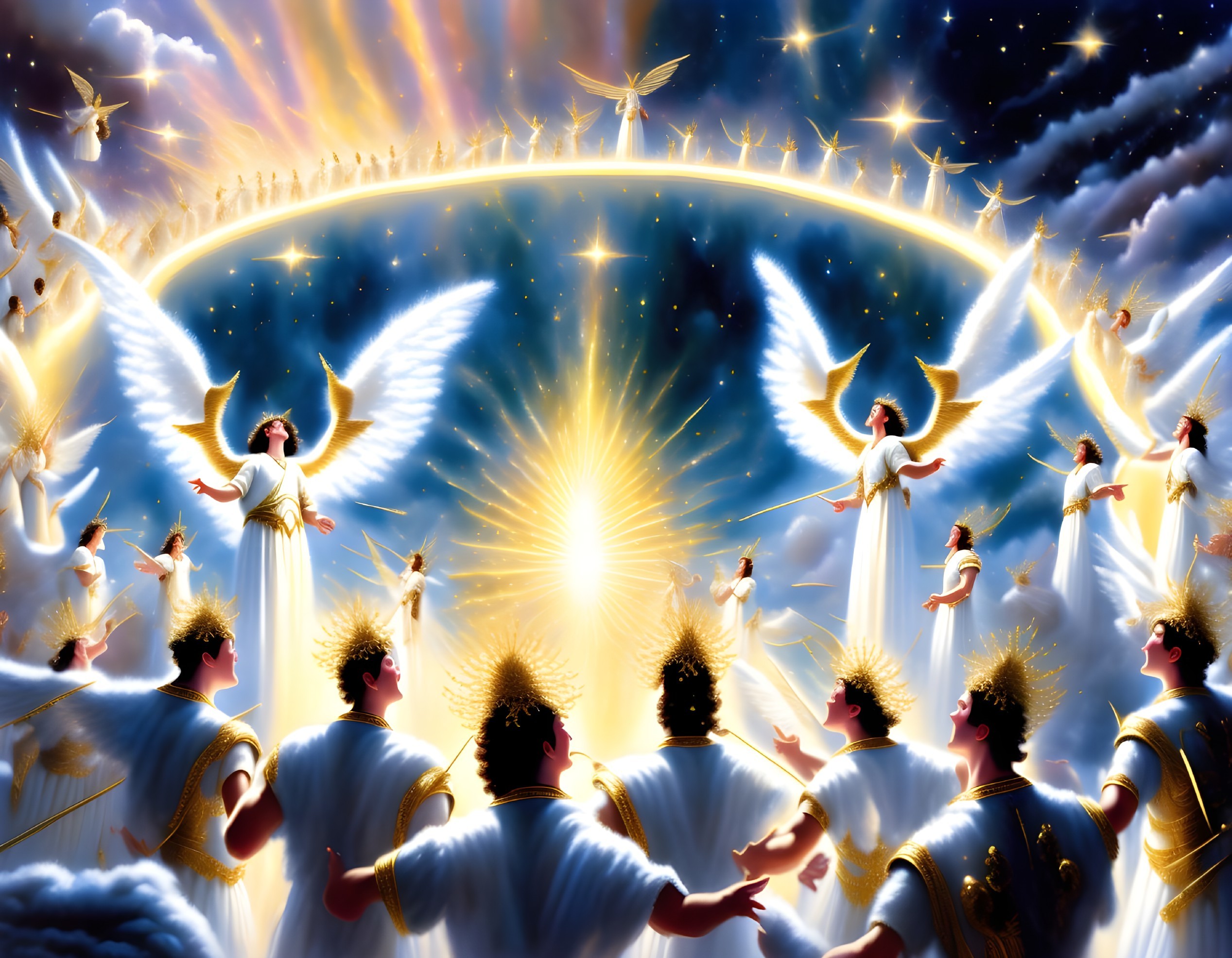 Golden Serenity: Divine East Asian Figure in Heavenly Temple