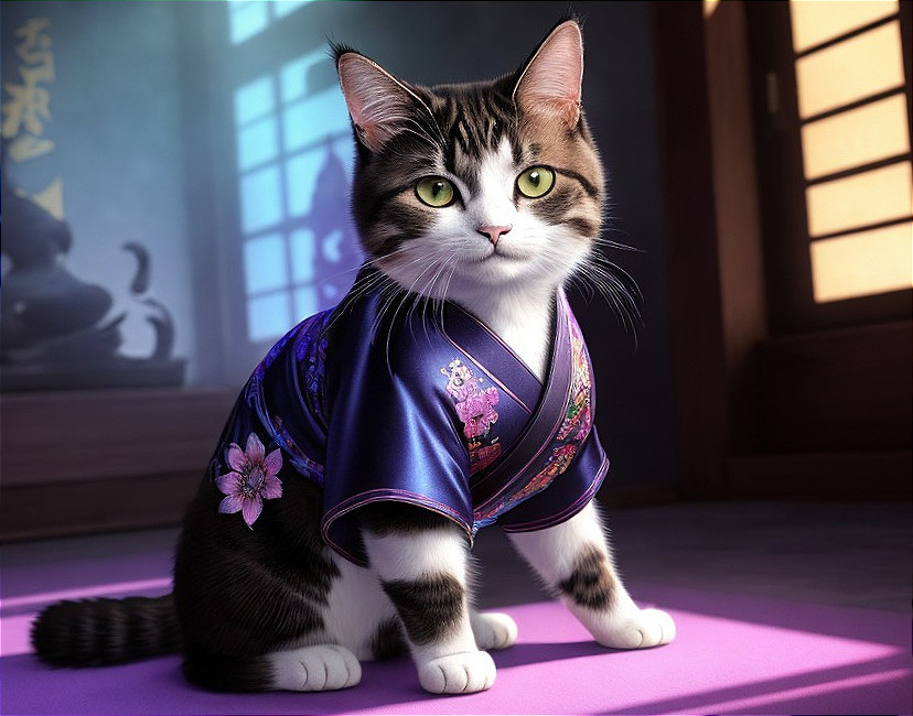 Muscular Cat in a Dojo: Feline Fitness Fun
