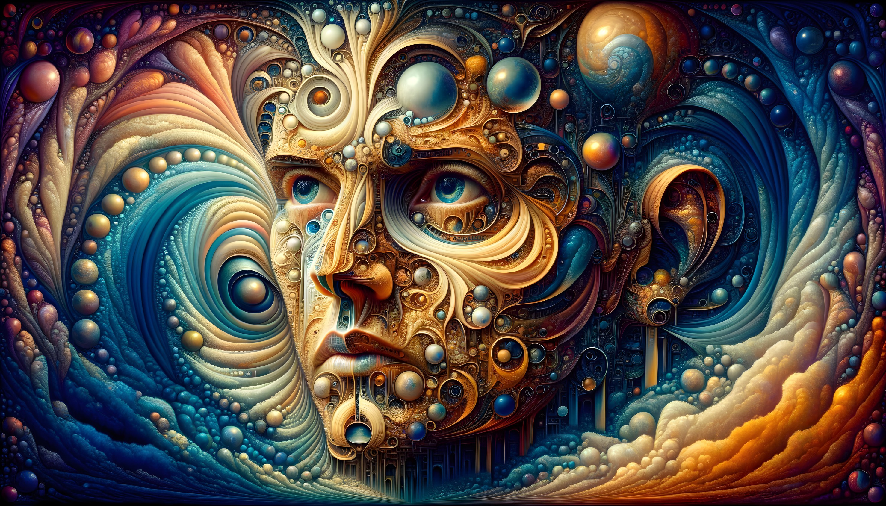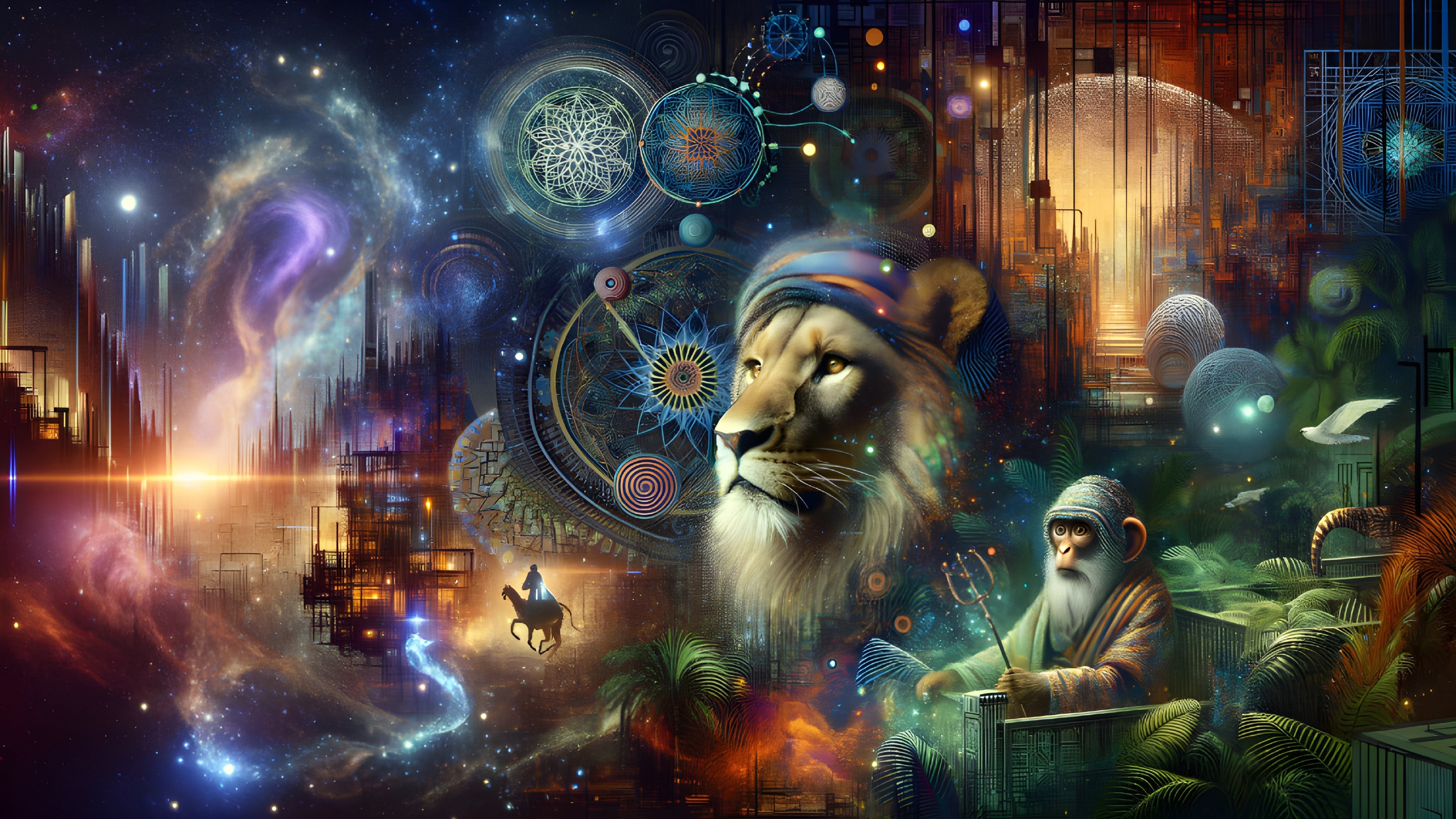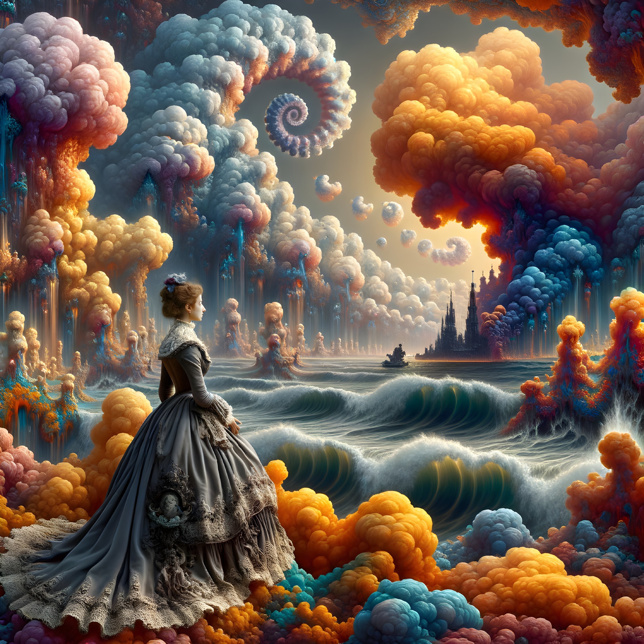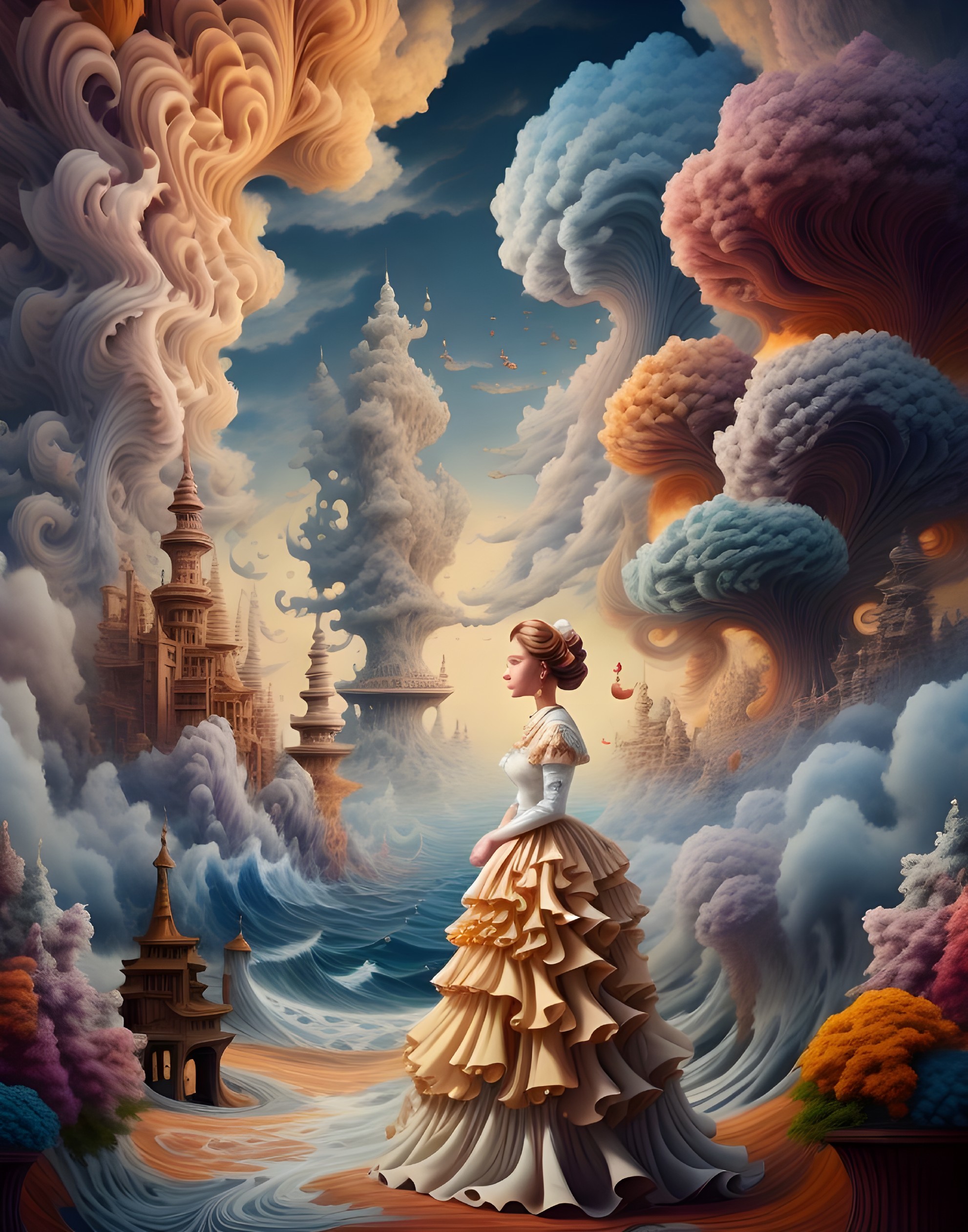 Cosmic Fusion: Woman's Portrait & Historical Landscape
