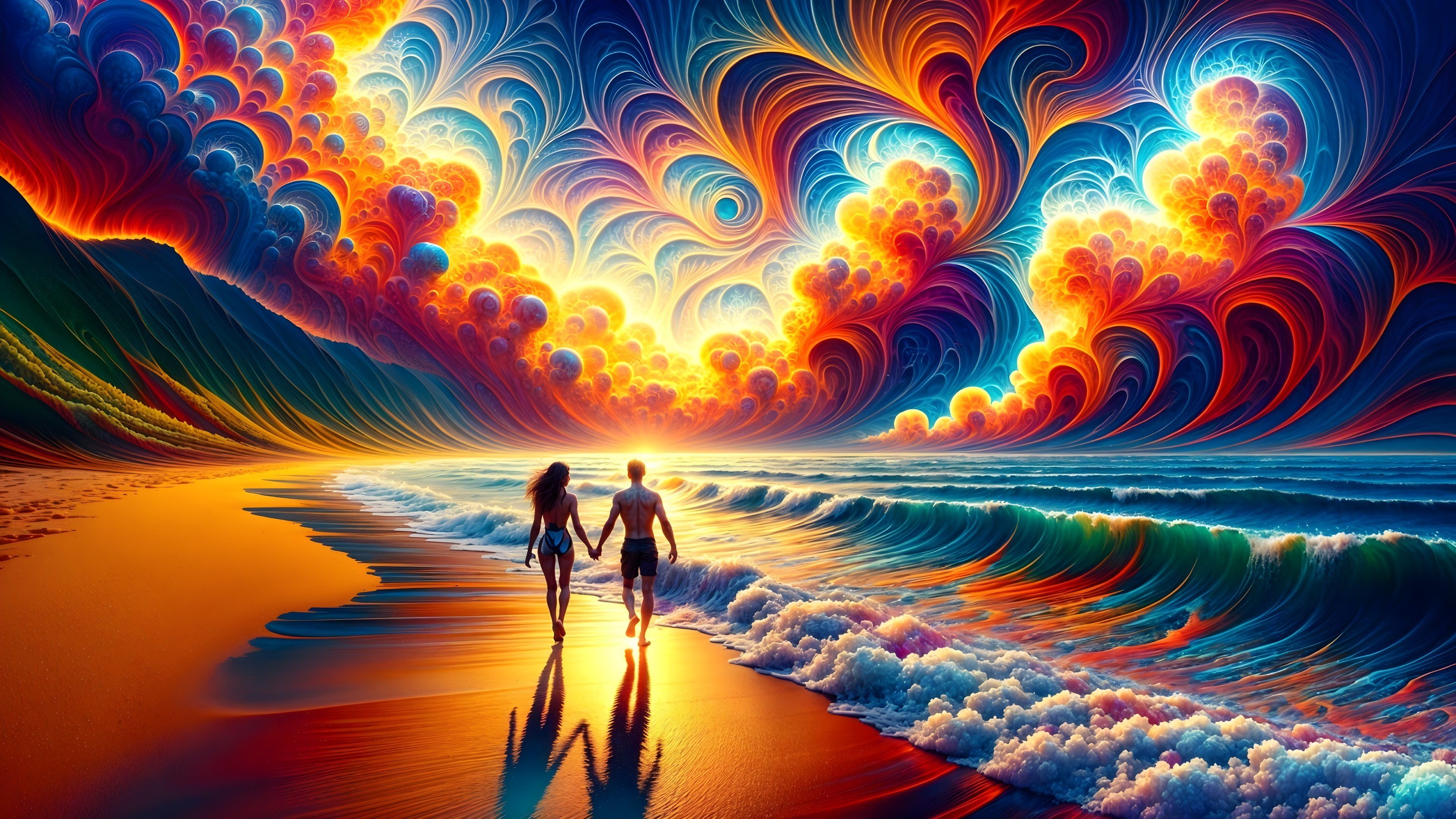 Flamme-hed og fragmenteret sol-op/ned-gang ved strandkanten: A Dreamlike Beach Escape