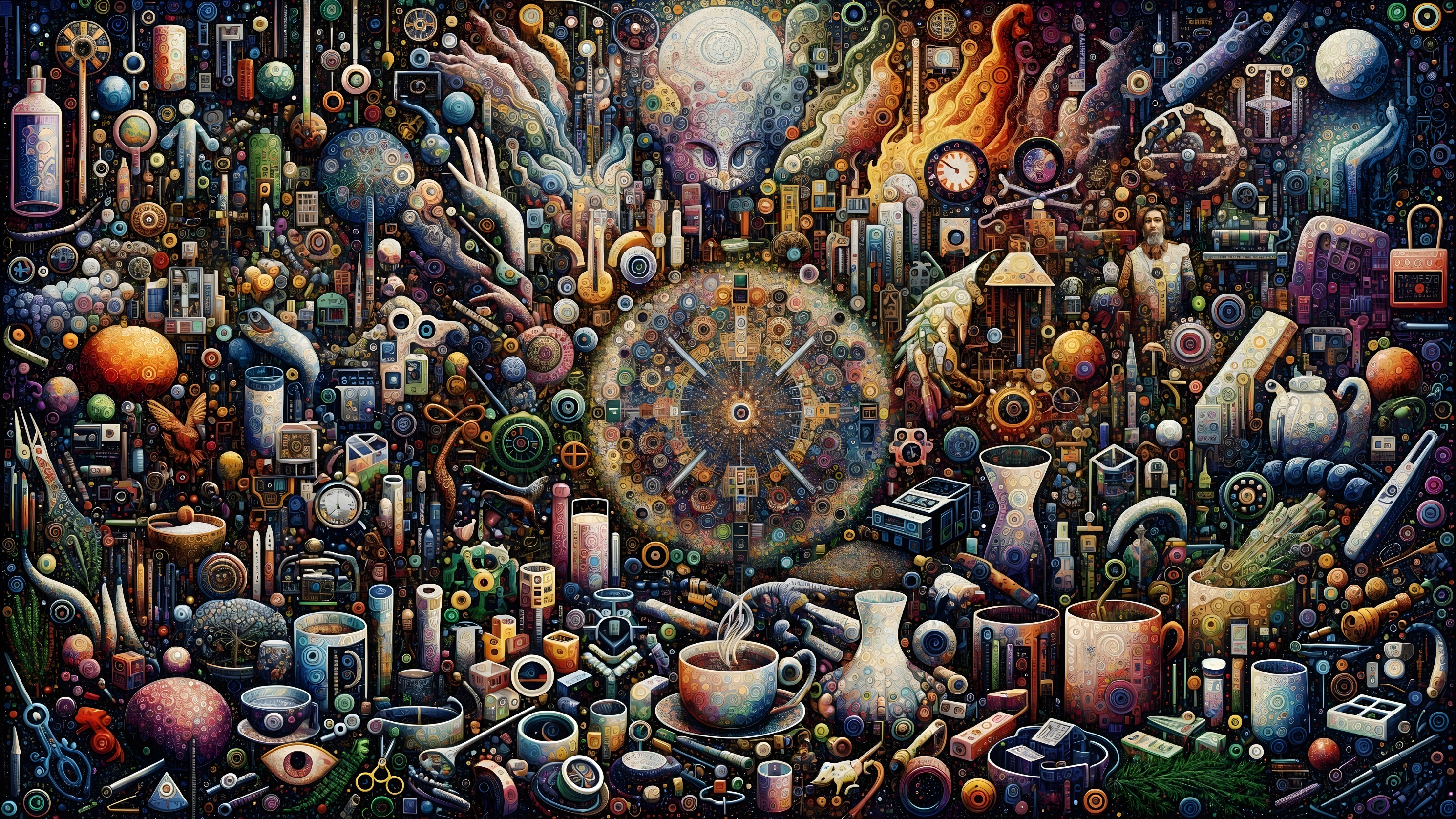 Ting der starter med 'T'': Surreal Collage of Science and Imagination