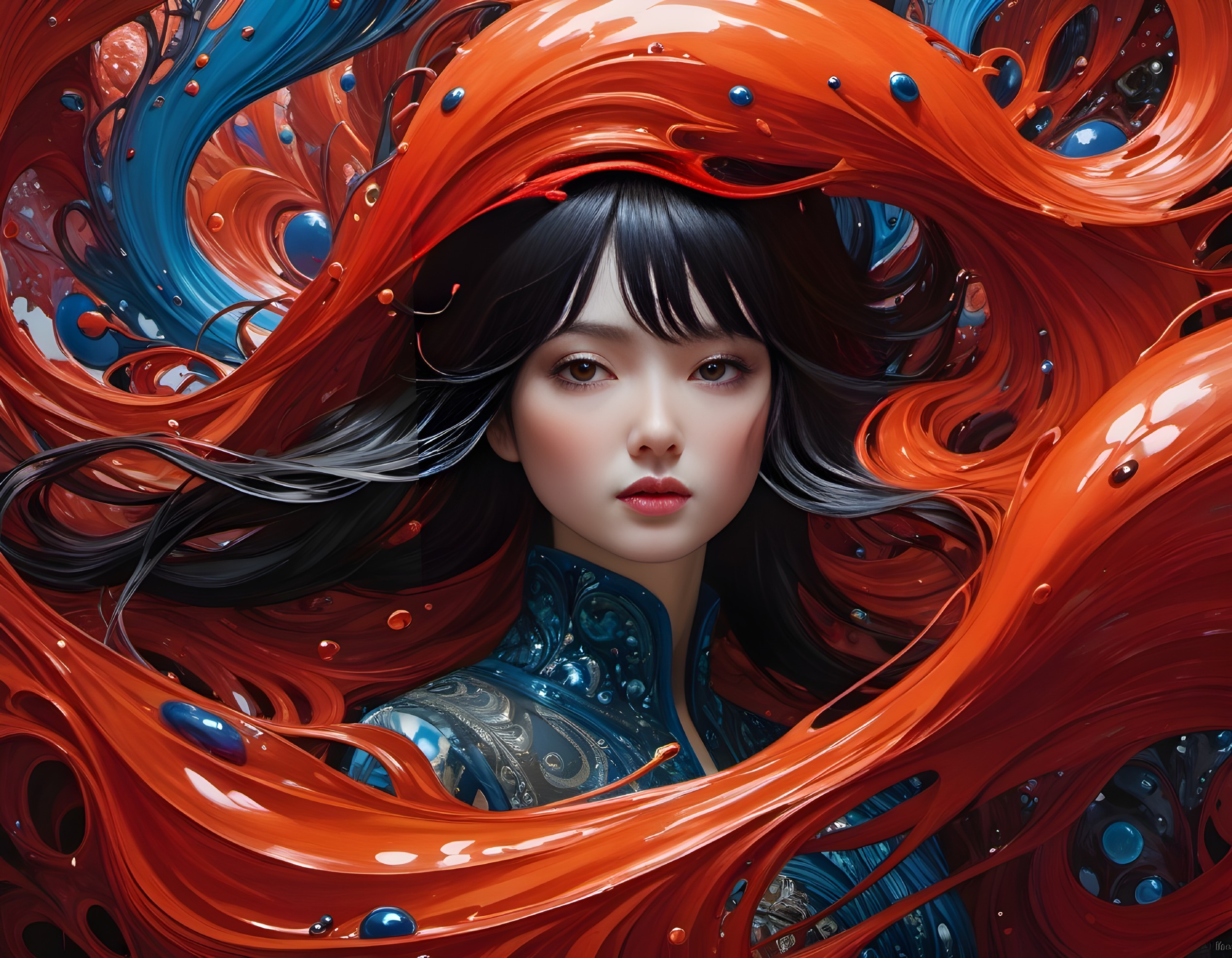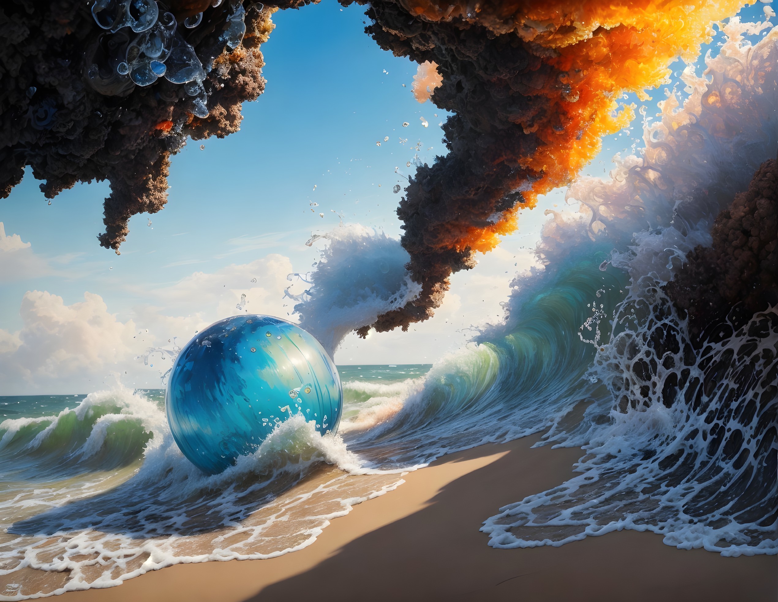 Oceanic Dreamscape: Azure Sphere & Fiery Clouds