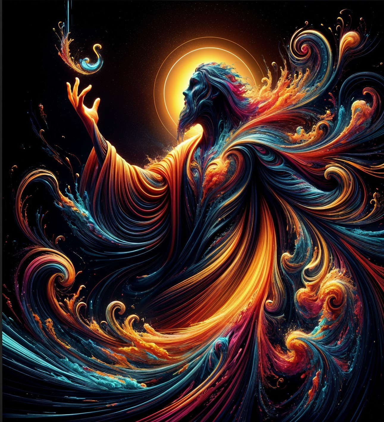 Dynamic Figure Amidst Bold Abstract Colors