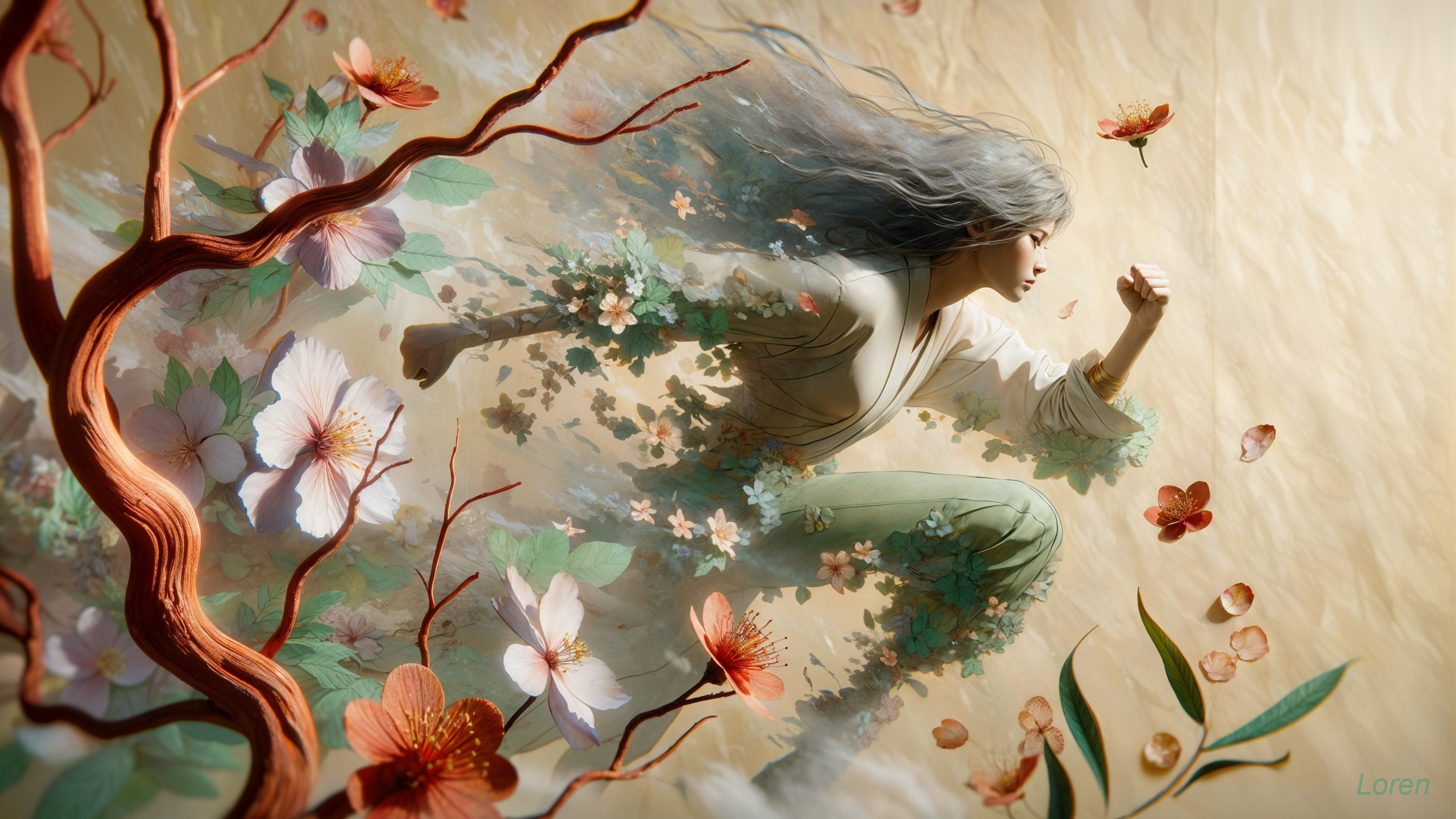 Dynamic Warrior Amidst Abstract Chaos