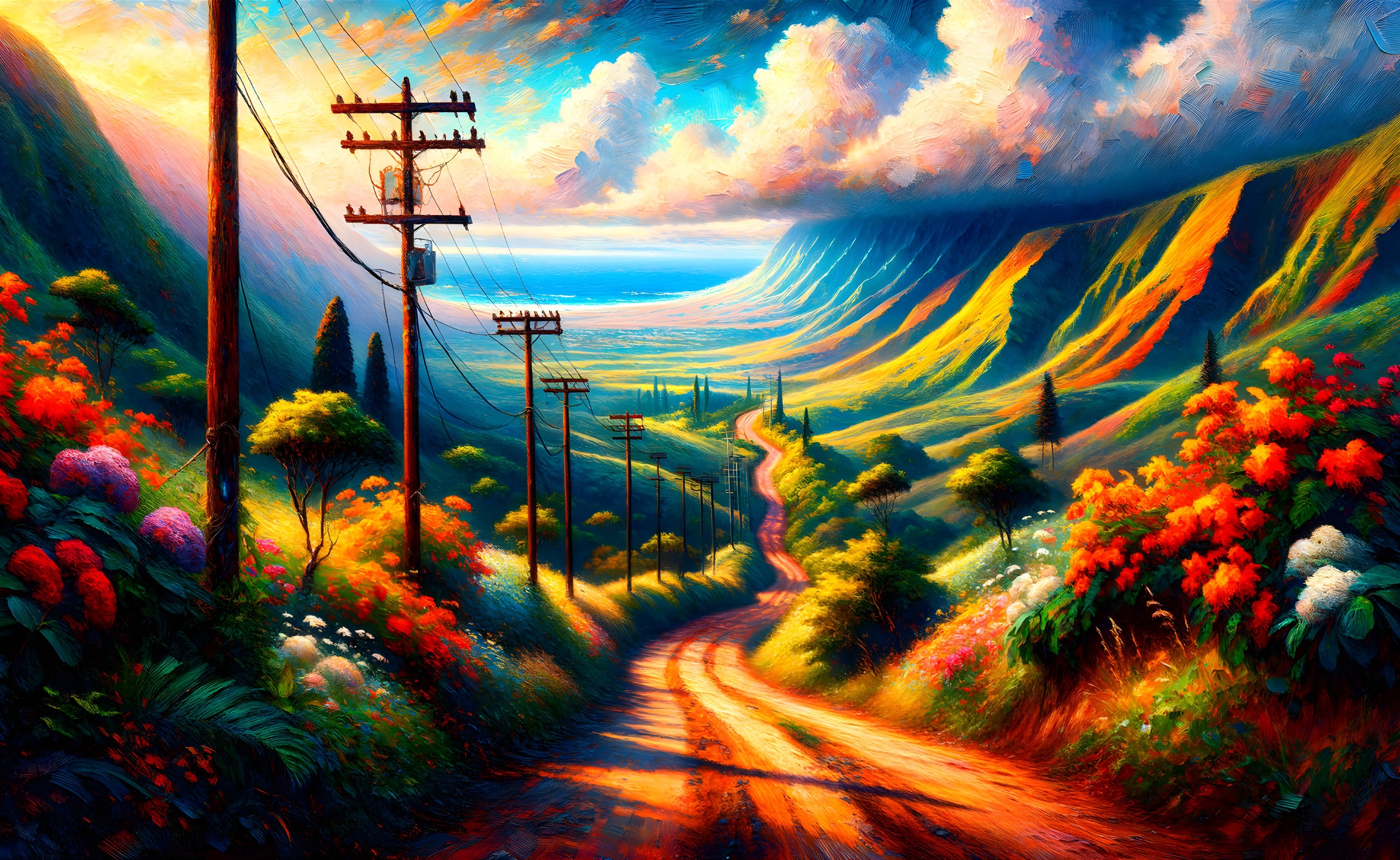 Swirling Skies Over Lush Valley