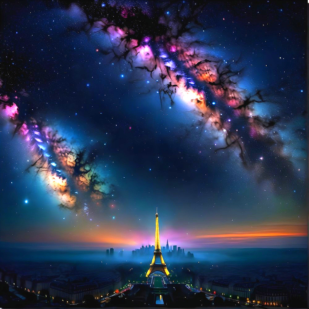 Eiffel Tower Under a Starry Cosmic Sky